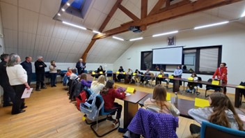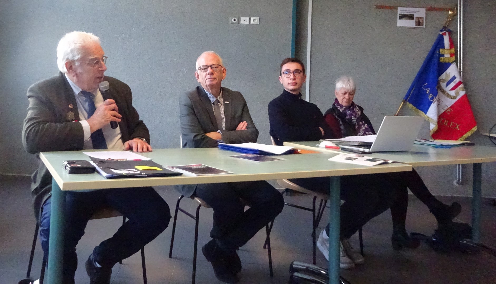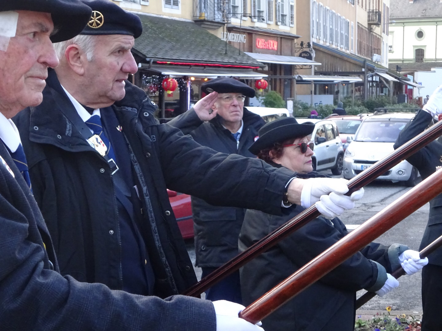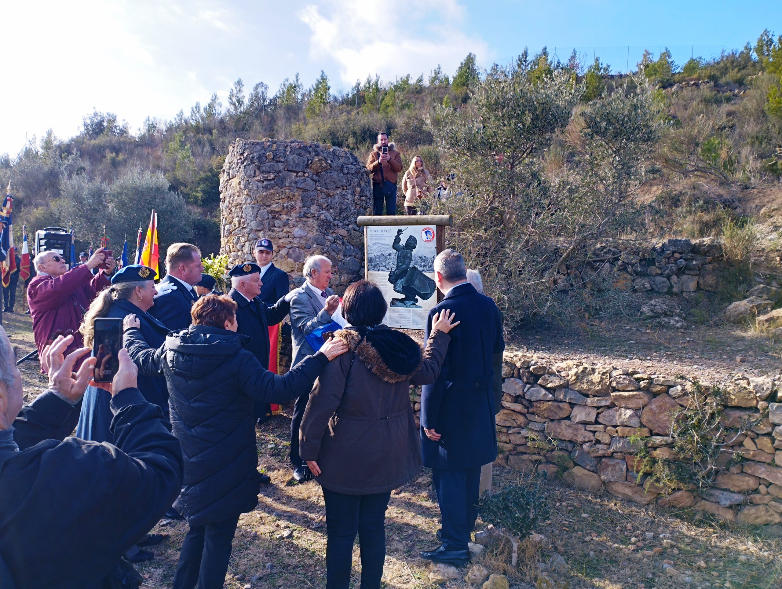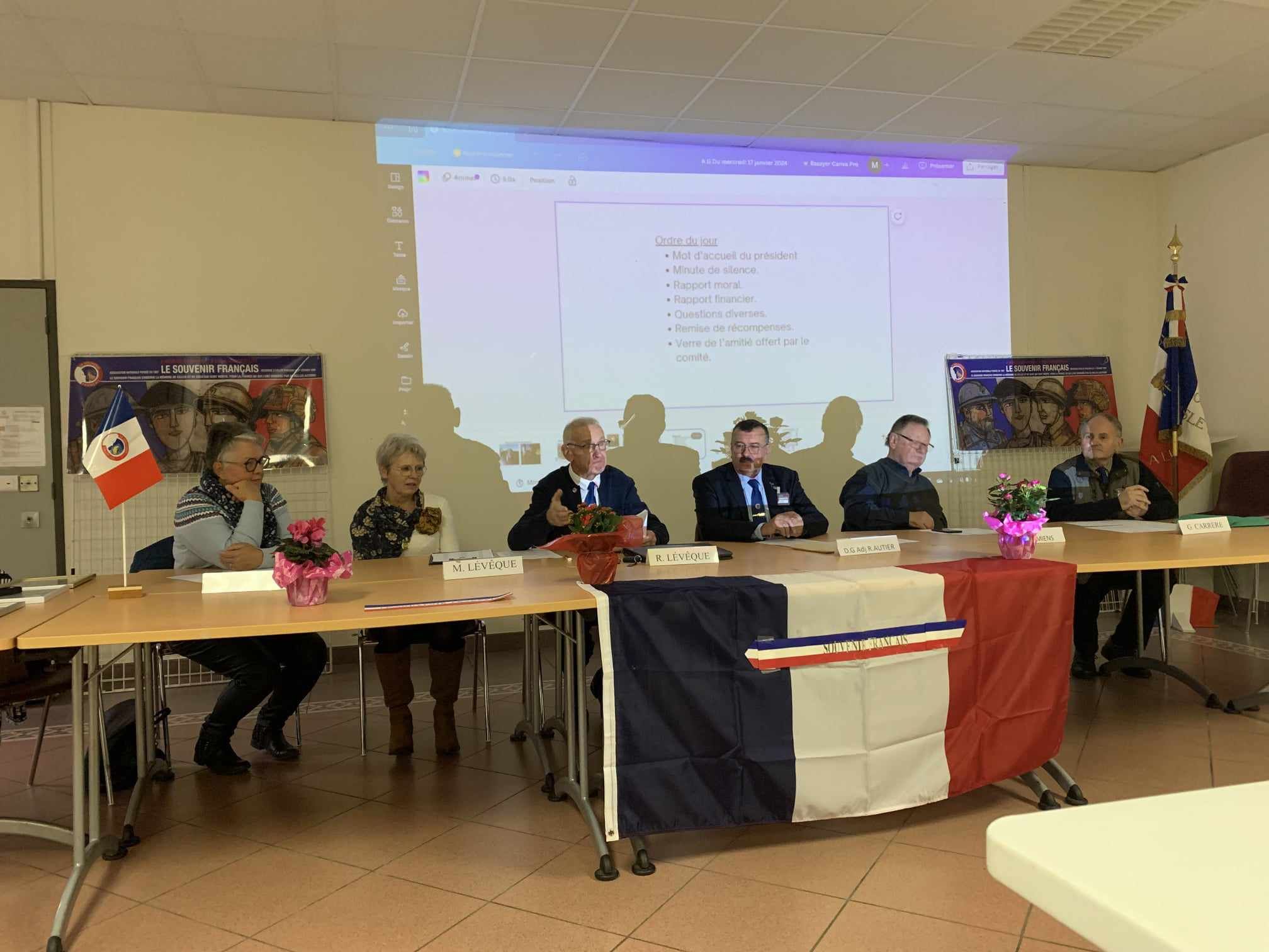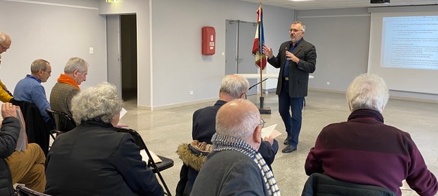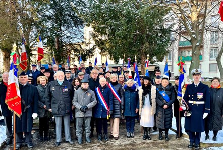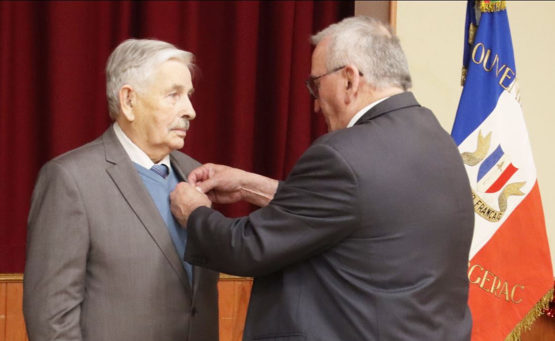 Remise de récompenses par le Comité du Souvenir Français de l’Isle-en-Dodon (Haute-Garonne) lors de la cérémonie d’hommage aux « Morts pour la France » pendant la guerre d’Algérie et combats du Maroc et de la Tunisie, le 5 décembre 2023. A l’issue de ce rassemblement, l’engagement de certains fidèles du comité a été récompensé.