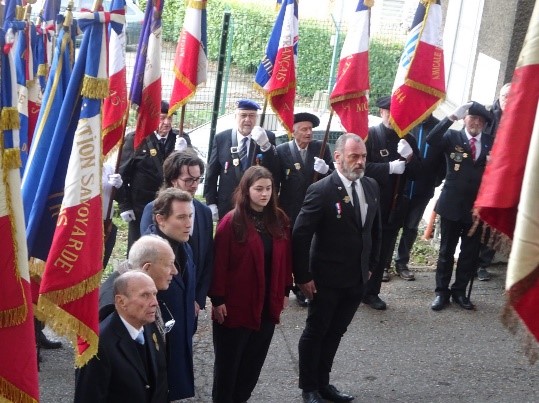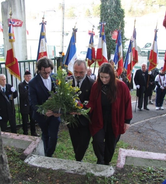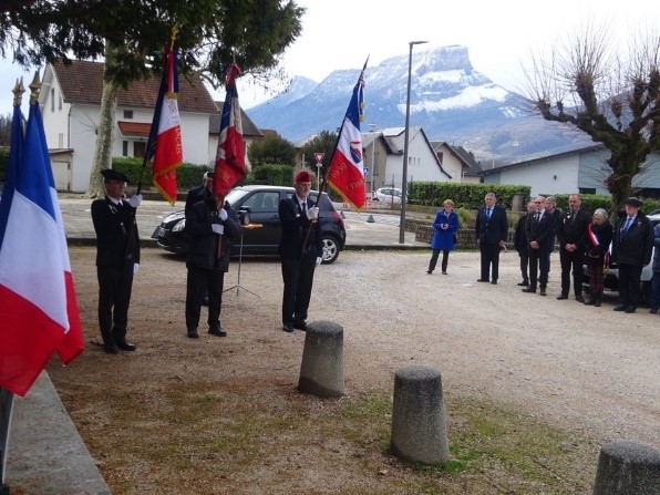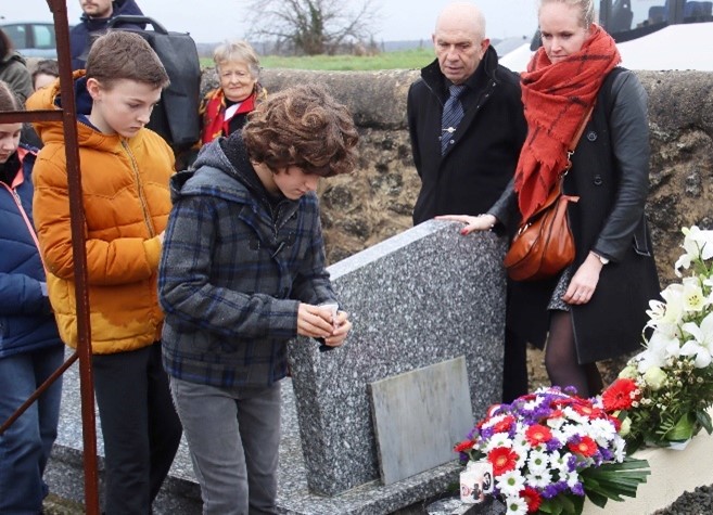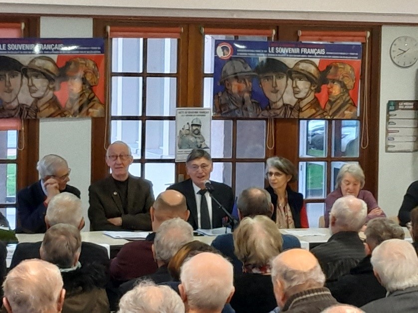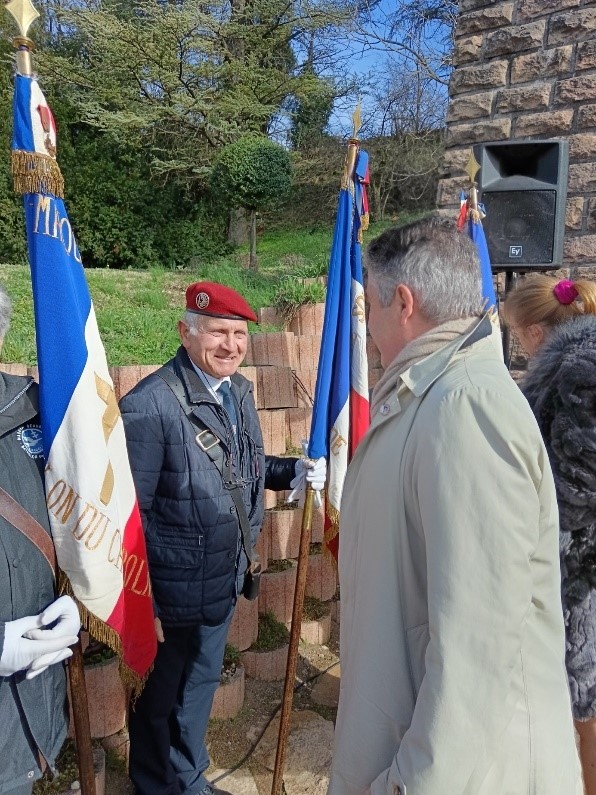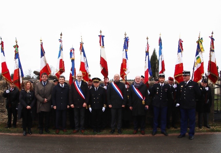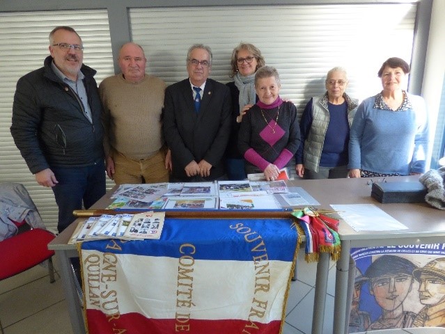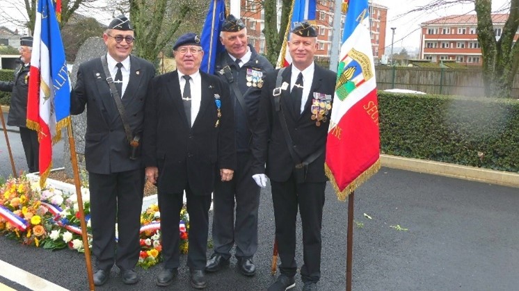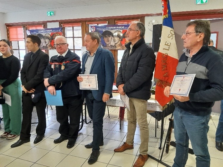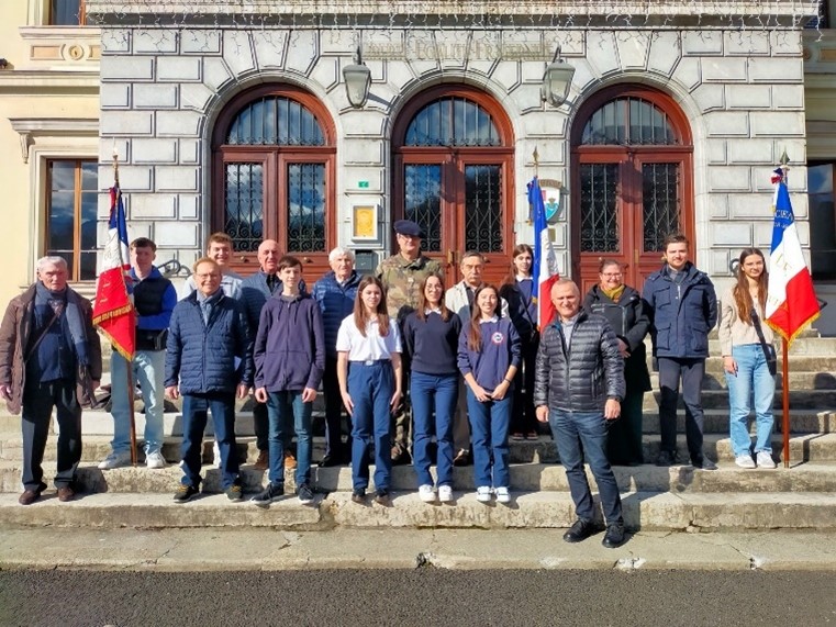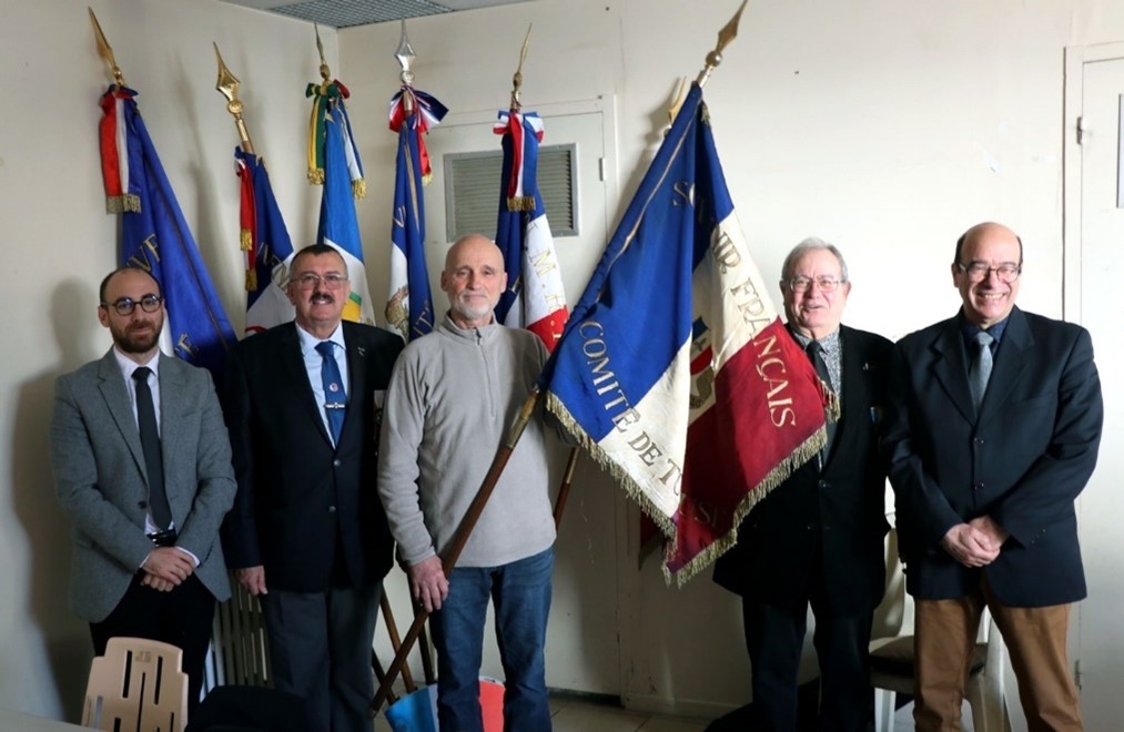 Remise du drapeau de l’Union des Poilus aux élèves du collège Streinger de Douai (Nord), au début du mois de février 2024.