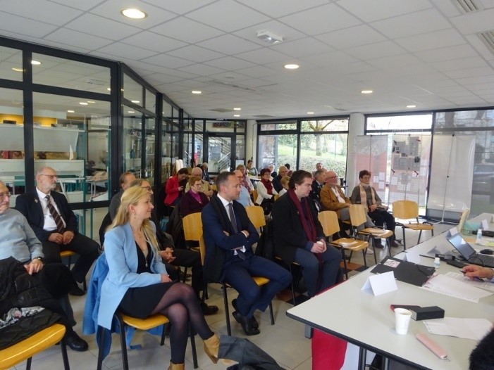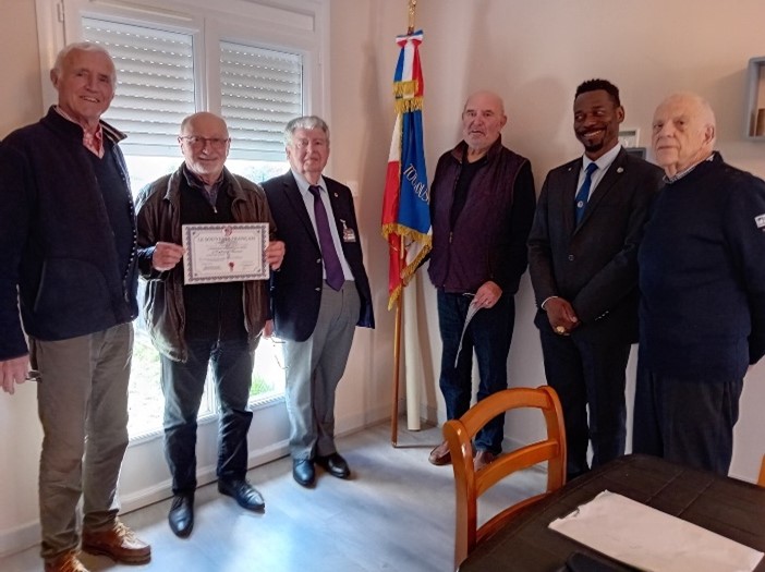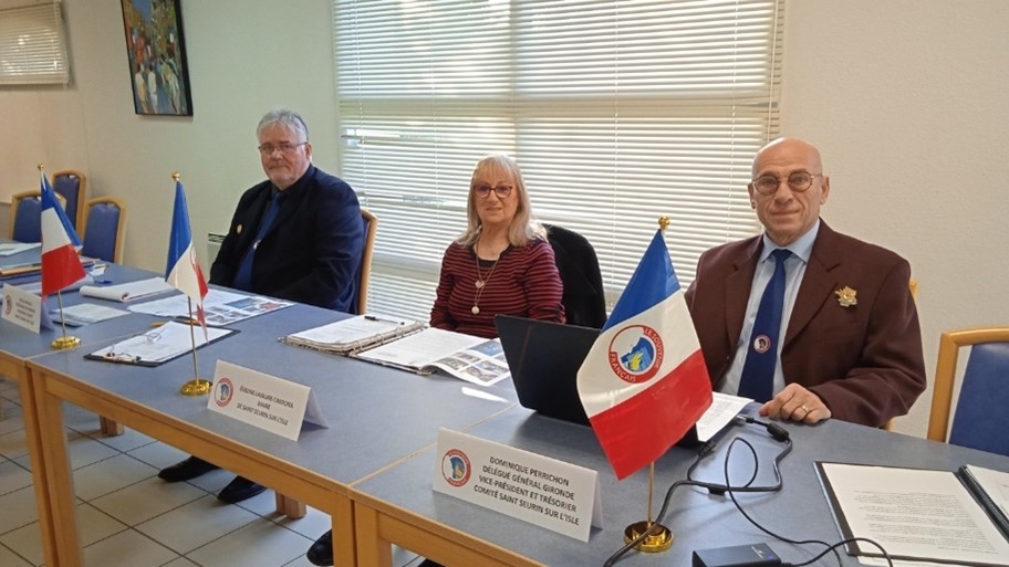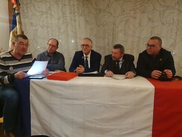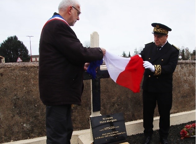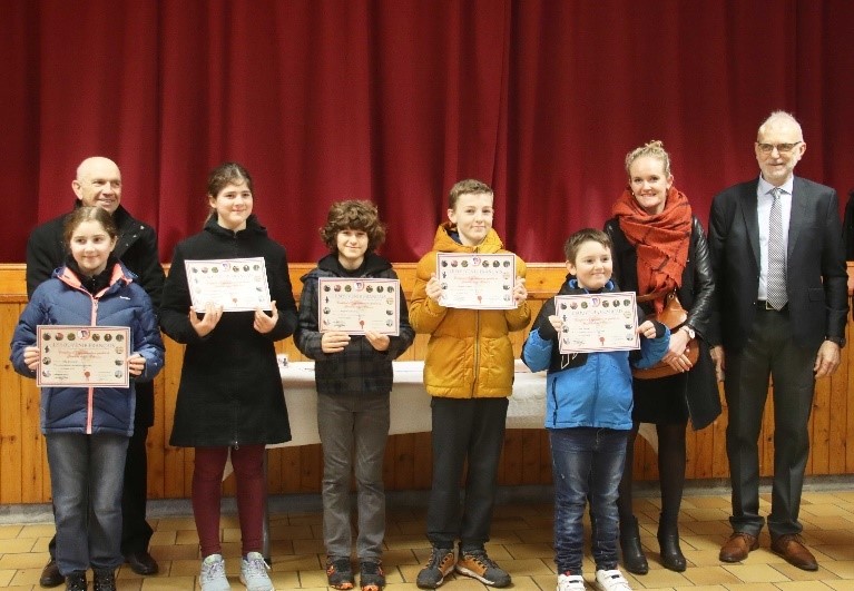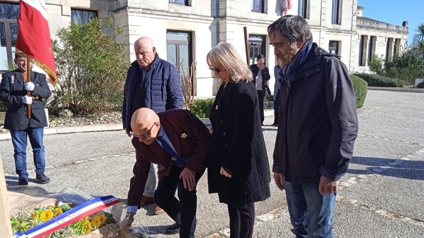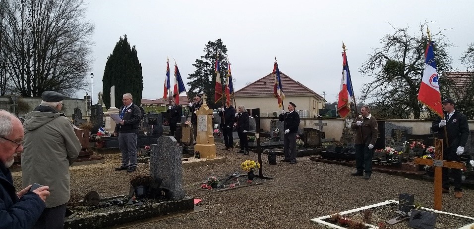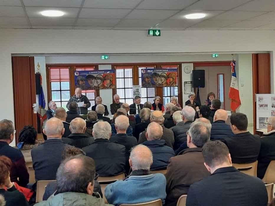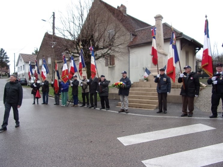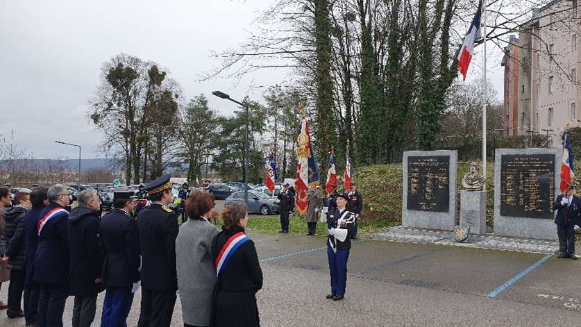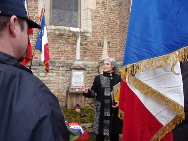 Remise du drapeau de l’Union des Poilus aux élèves du collège Streinger de Douai (Nord), au début du mois de février 2024.