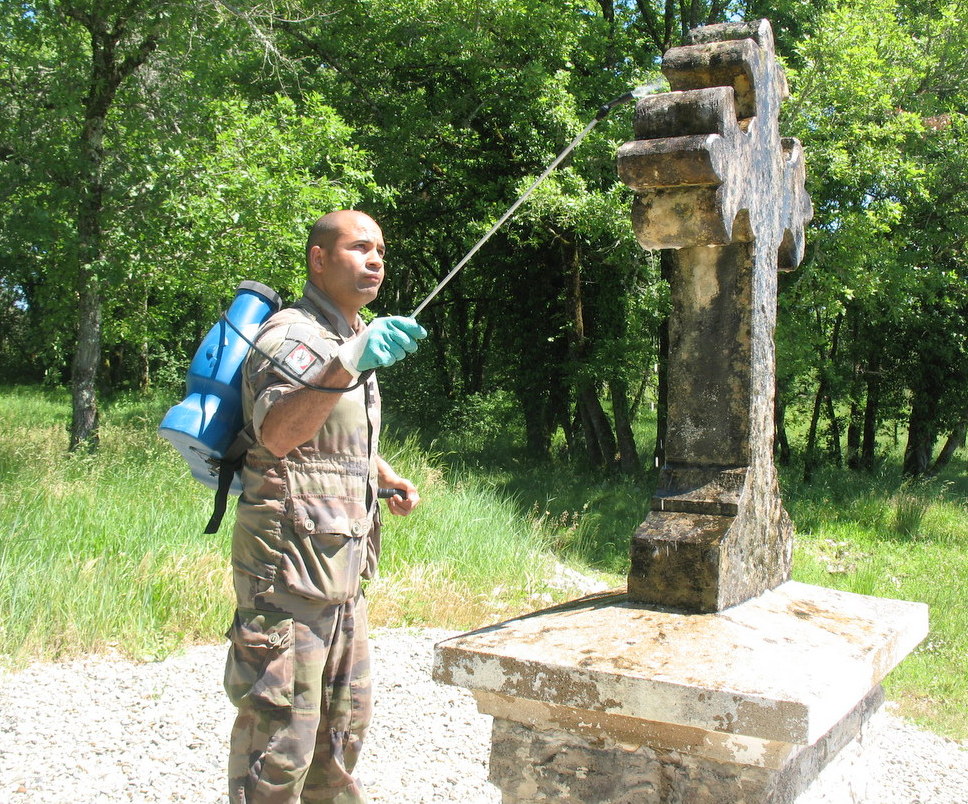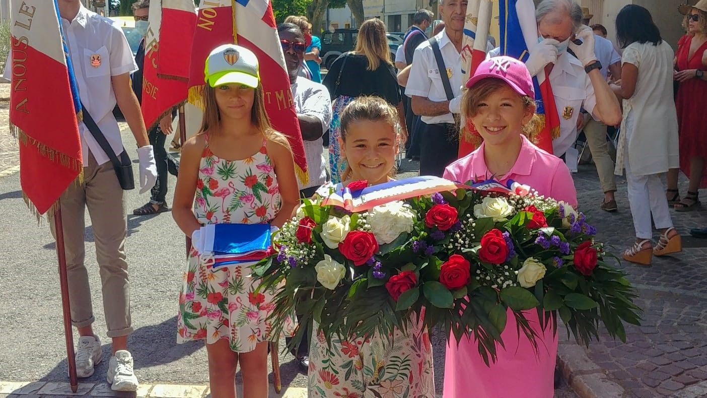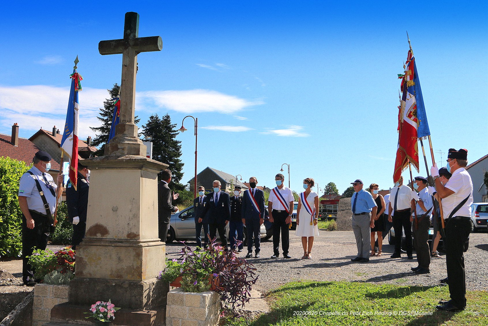 Dépôt de gerbes sur la tombe du Marechal de LATTRE de TASSIGNY, par Claude Jeanty, Président du comité du Souvenir Français de la Chataigneraie (Vendée) et Mme Alexandrine Grolier, adjointe au Maire de Mouilleron-Saint-Germain, le 15 août 2020, à l’occasion du 76ème anniversaire du débarquement de Provence.