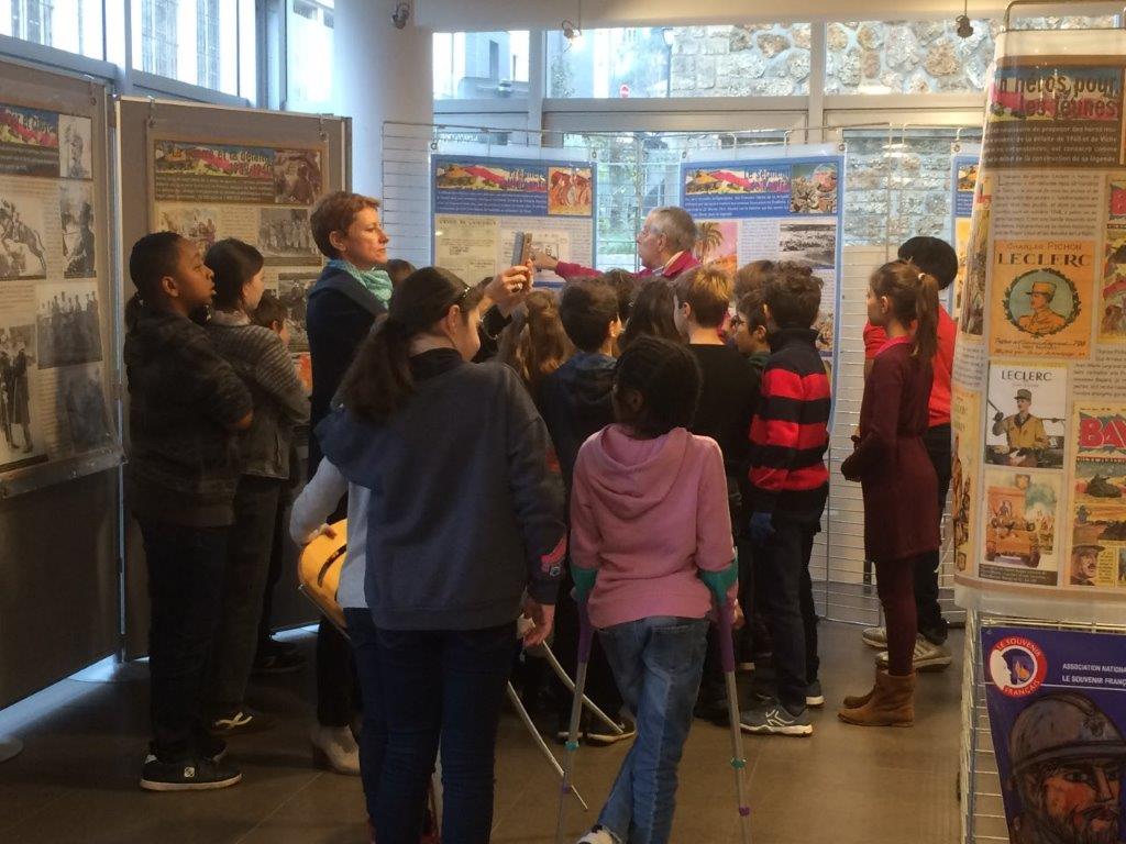 Présentation de la Deuxième division blindée à des scolaires par le président du comité de Vaucresson (92).