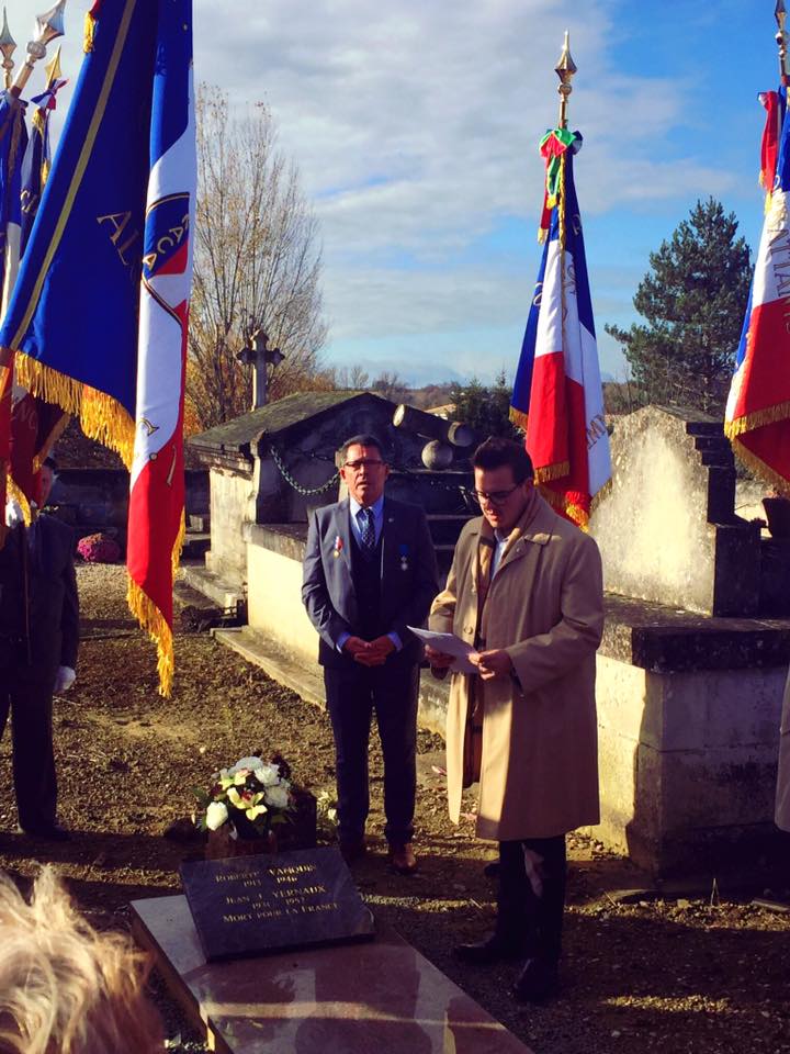Hommage à Jean-Jacques Yernaud, « Mort pour la France » en Indochine, lors de la réunion annuelle du comité du Souvenir Français de l’arrondissement de Libourne à Branne (33), le 25 novembre 2017.