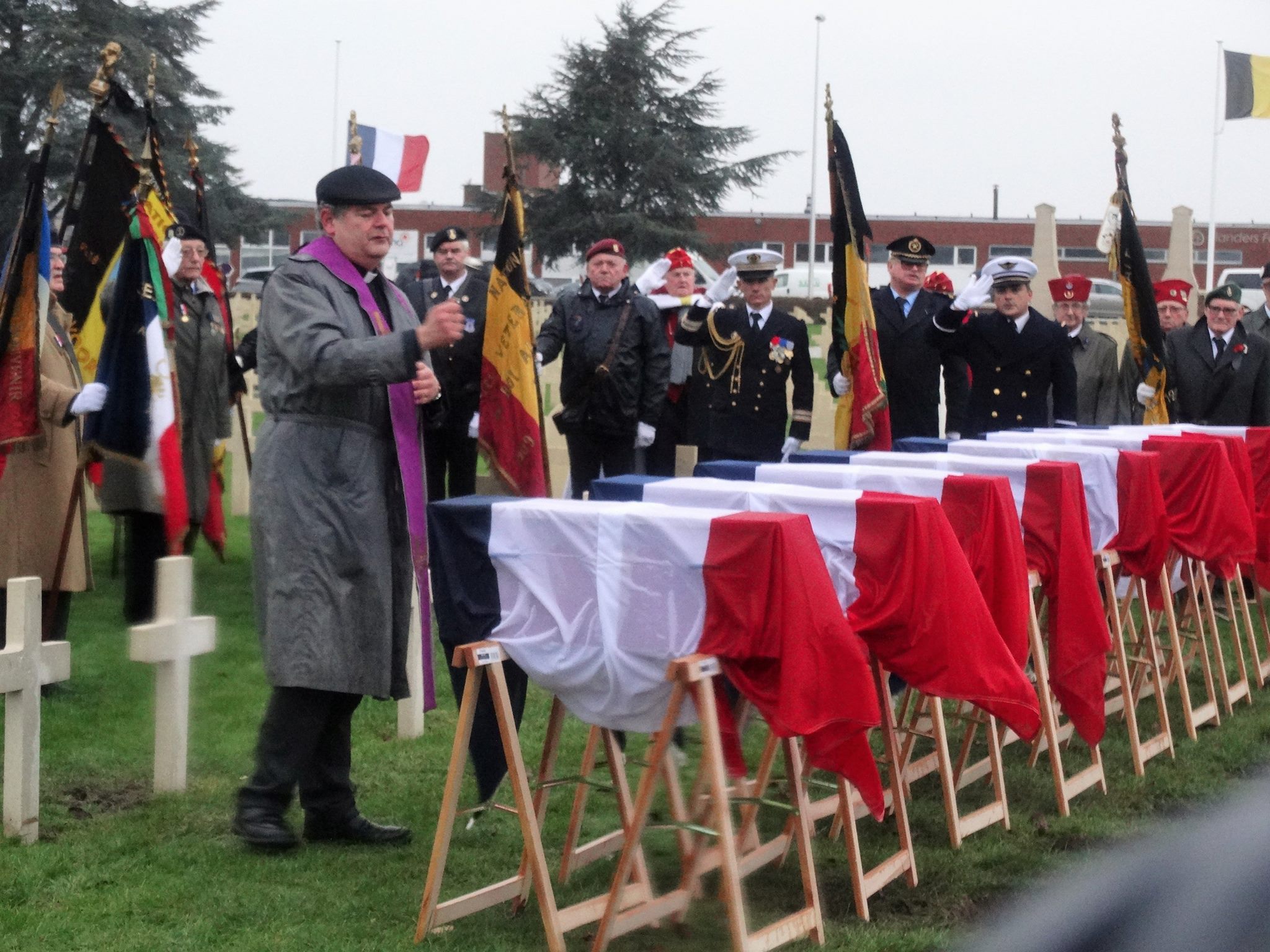 Cérémonie d’inhumation de 8 soldats français « Morts pour la France » à Dixmude, Belgique durant la Première Guerre mondiale, le 7 décembre 2017.