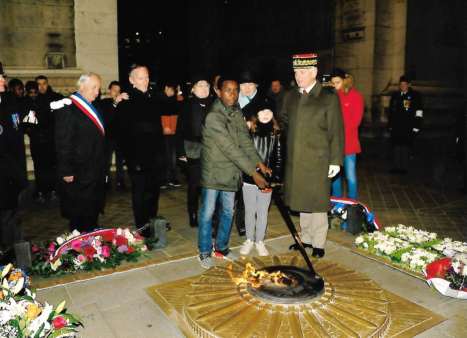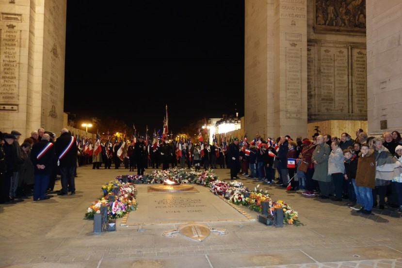 Cérémonie du ravivage de la Flamme sous l’Arc de Triomphe le 26 novembre 2017.
