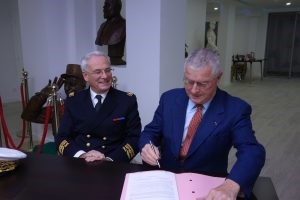 Signature d’une convention de partenariat avec le général Jean-Pierre Job, président de la Fondation Armée de l’Air, le 26 novembre 2017.