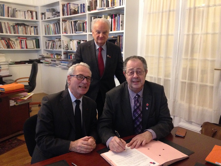 Signature d’une convention de partenariat avec Yvon Roussel, président de l’association internationale de l’école française du Tambour, le 26 novembre 2017.