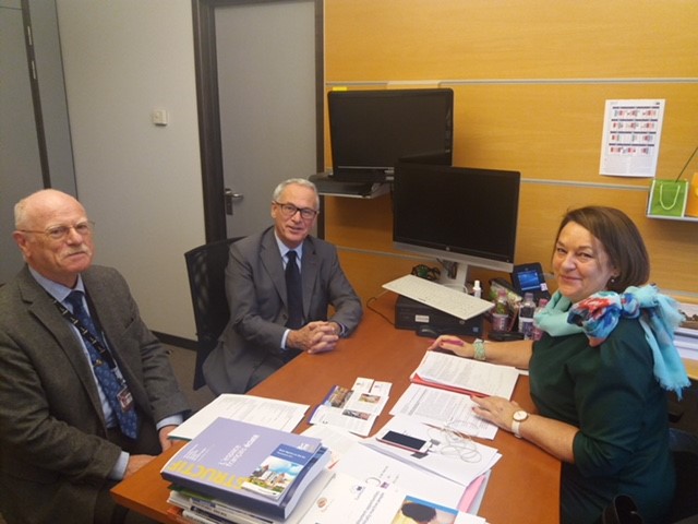 Réunion avec la députée européenne Nathalie Griesbeck, le délégué général pour la Belgique Claude Michel et le président général du Souvenir Français à Bruxelles, le 29 novembre 2017.