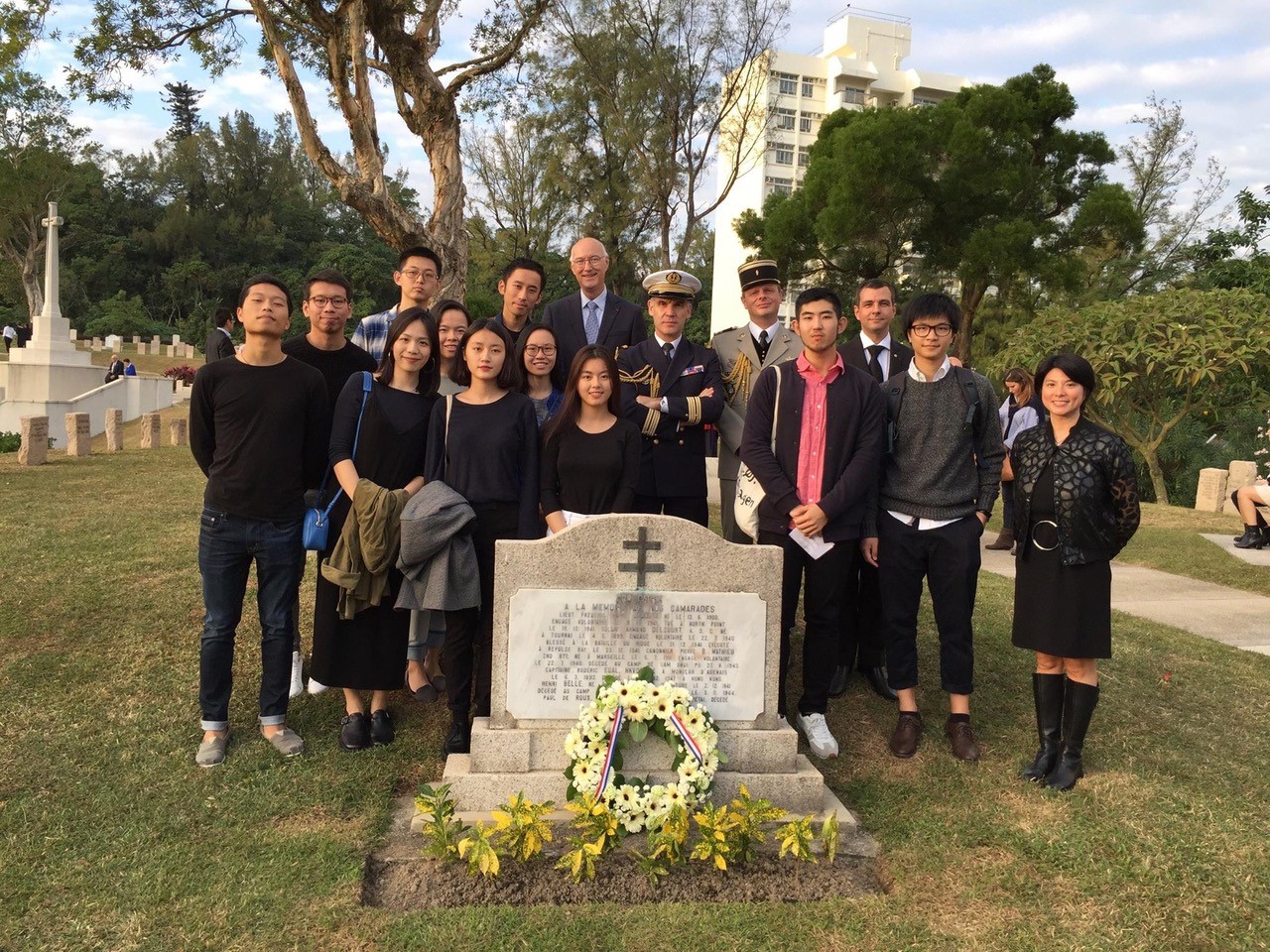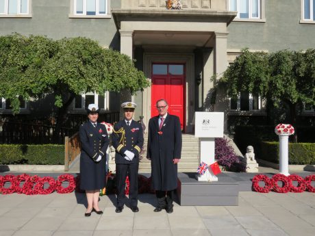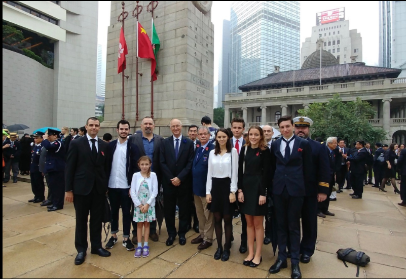 Participation du comité du Souvenir Français de Hong Kong, représenté par François Drémeaux, à la cérémonie à la mémoire des soldats disparus au cours des deux conflits mondiaux, le 12 novembre 2017.