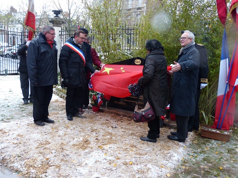 Inauguration de la stèle en hommage aux travailleurs chinois durant la Grande Guerre à Arras (62), le 10 décembre 2017, en présence du président général du Souvenir Français.