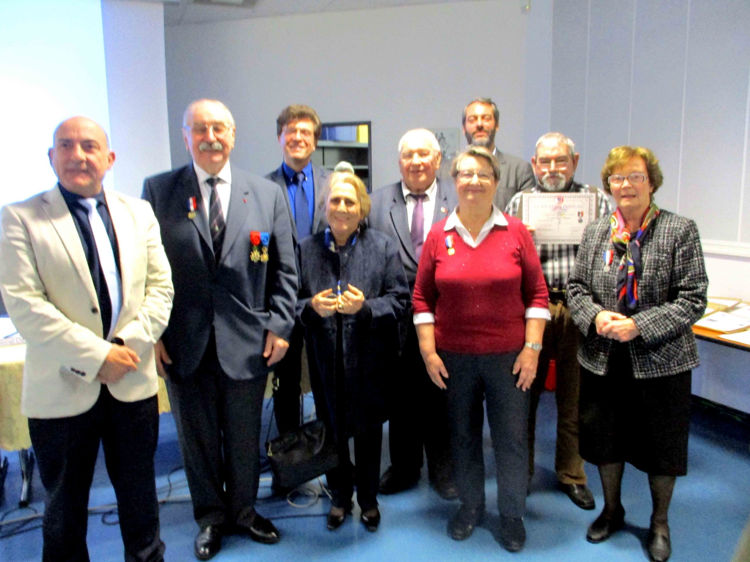 Remise de médaille aux membres du comité du Souvenir Français de Clamart autour de leur président, en présence des représentants de la municipalité et du délégué général pour les Hauts-de-Seine.
