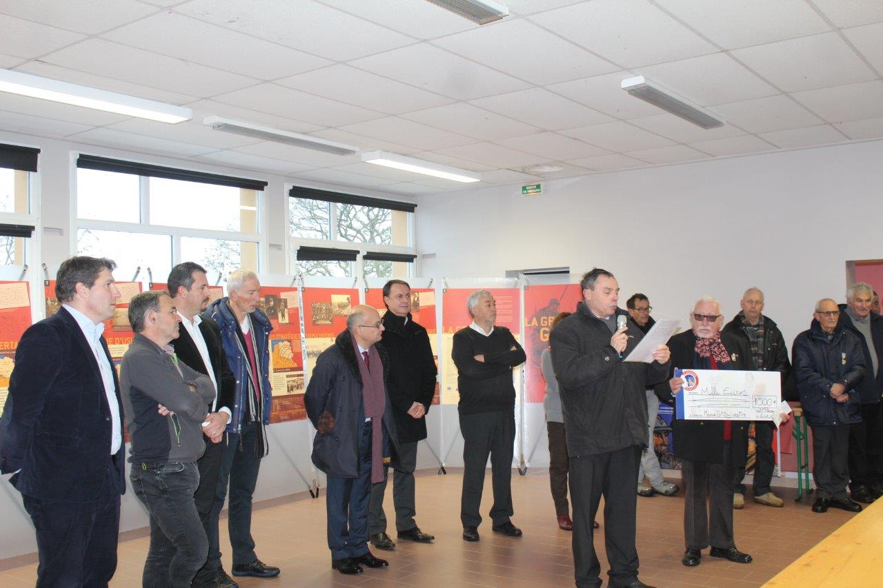 Remise du chèque au maire de Saint Sylvestre pour la rénovation du monument aux Morts communal par le délégué général du Souvenir Français pour l’Ardèche Jean-Luc Pauthe, le 2 décembre 2017.