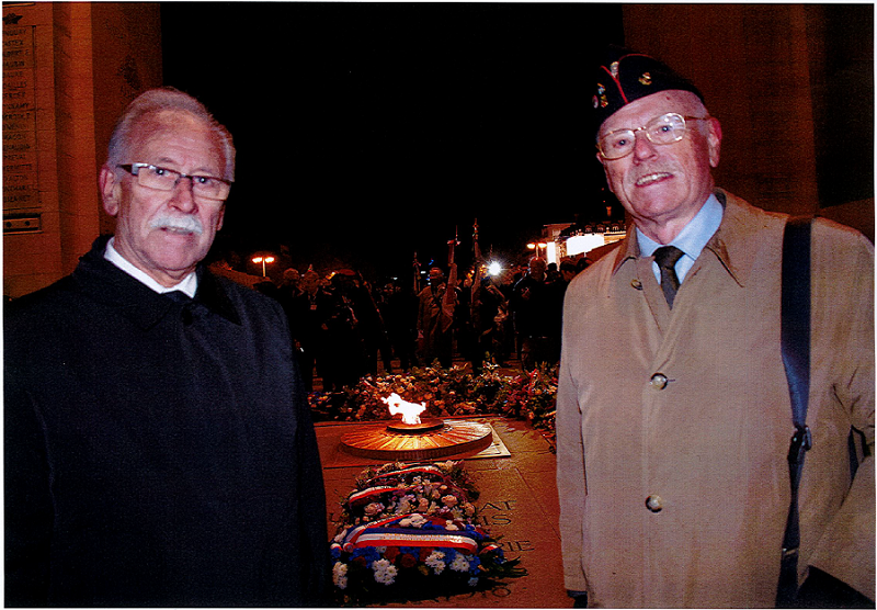 Le délégué général du Souvenir Français pour la Belgique Claude Michel avec le président de la FNC/NSB Fédération nationale des combattants de Belgique Léon de Turck, au ravivage de la flamme du Souvenir Français, le 26 novembre 2017.