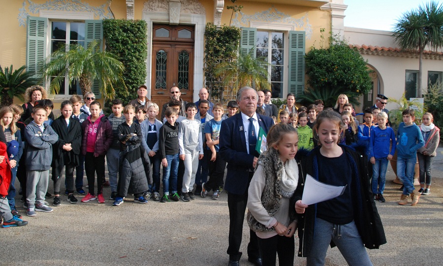 Cérémonie de la flamme de l’espoir du 23 novembre 2017, au monument aux Morts de Bormes-les-Mimosas (83).