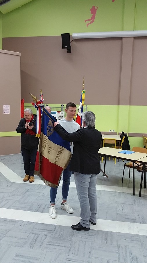 Remise du drapeau de la Libération Nord par le Président Général au lycée français d’Alicante, 25 janvier 2019.