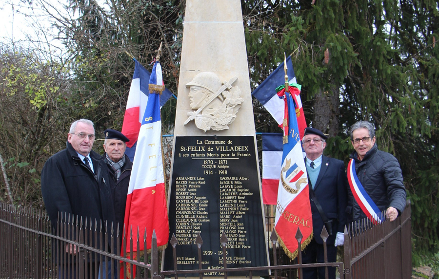 Apposition de la nouvelle plaque portant les noms des « Mort pour la France » de Saint-Félix-de-Villadeix, financé par le comité du Souvenir Français de Bergerac, présidé par Frédéric Gontier.
