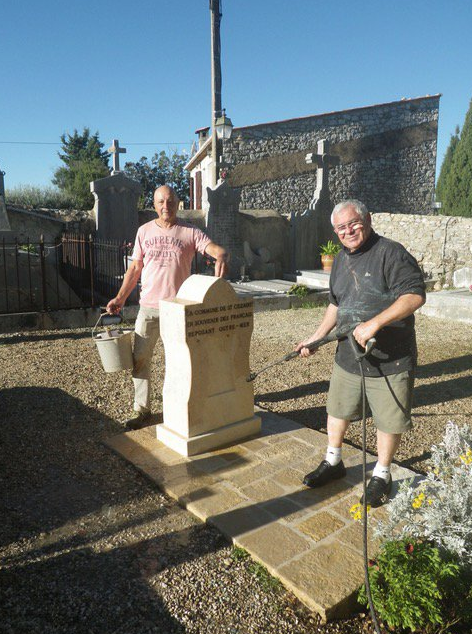 Entretien d’une tombe d’un « Mort pour la France » dans le cimetière de Peymeinade (06) par le comité du Souvenir Français de Peymeinade.