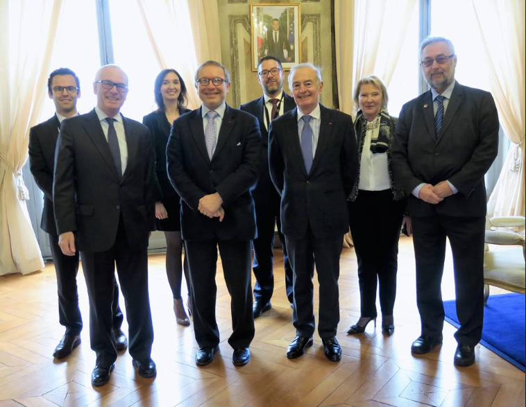 Déjeuner de travail à la préfecture des Yvelines entre le Préfet Jean-Jacques Brot et Le Souvenir Français représenté par Serge Barcellini, président général et le délégué général pour les Yvelines, Jean-Marc Blot.