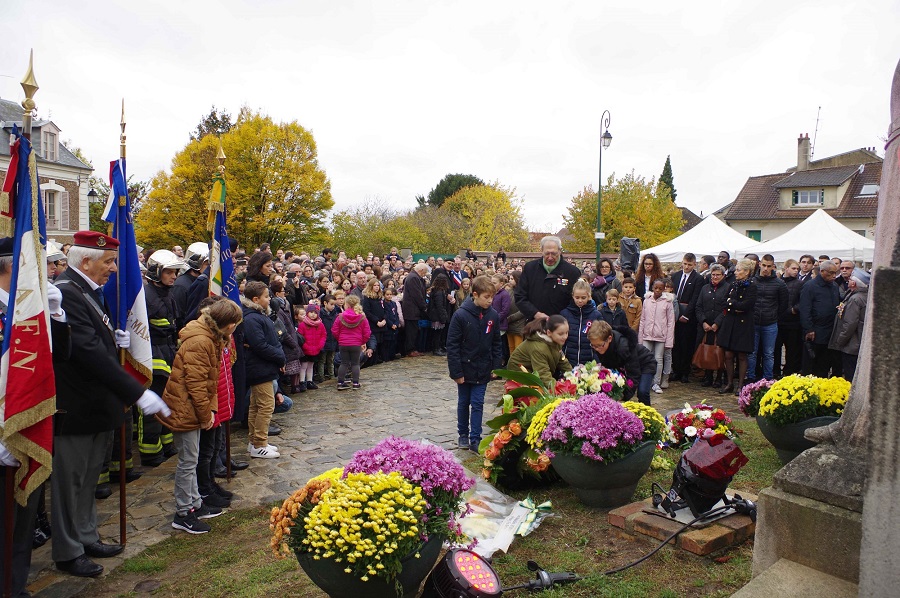 Dépôt de gerbe par le comité du Souvenir Français de Sucy-en-Brie (94) à la cérémonie du 11 novembre 2018.