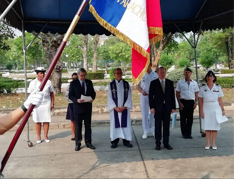 Cérémonie d’hommage aux 8 marins et soldat français morts au Siam et enterrés au Cimetière de Santikham présidée par le délégué du Souvenir Français de Thaïlande, François Doré, 11 janvier 2019.