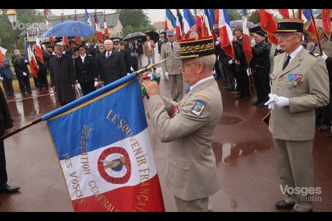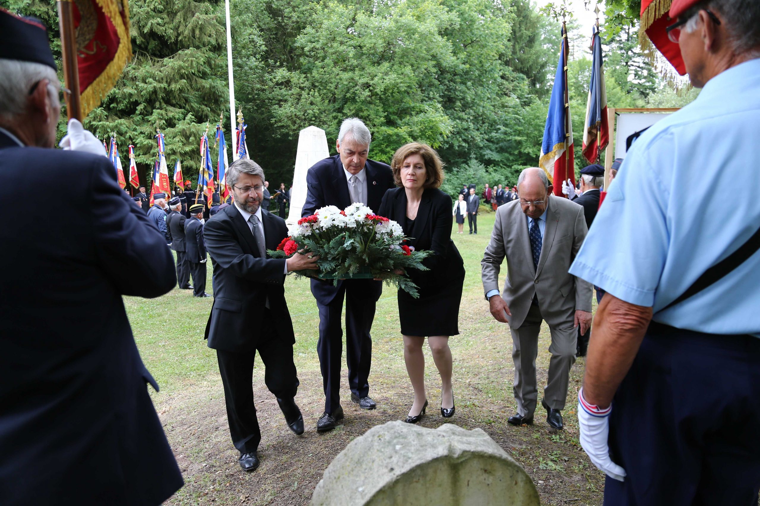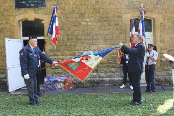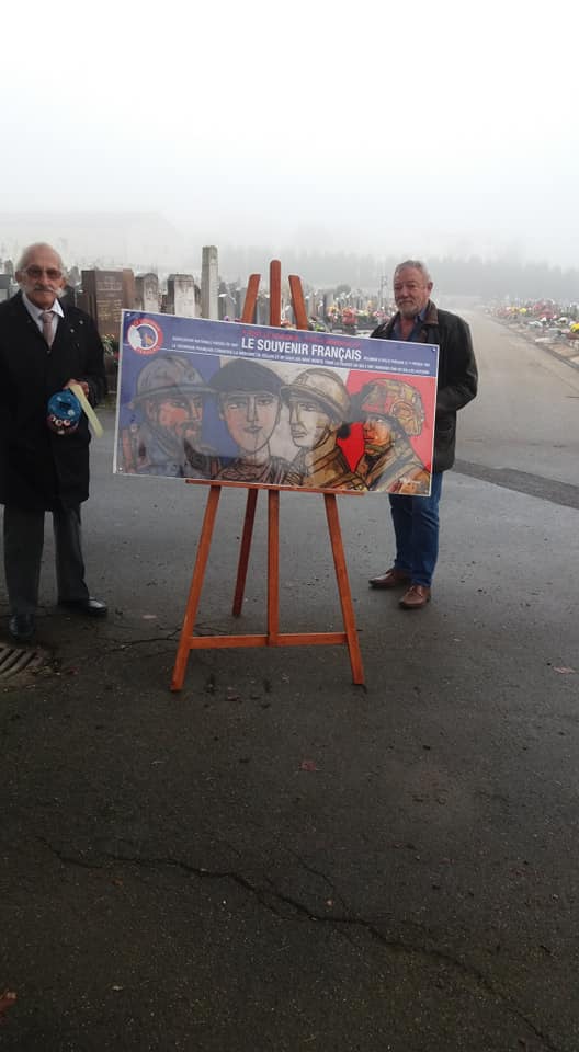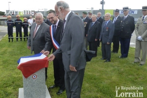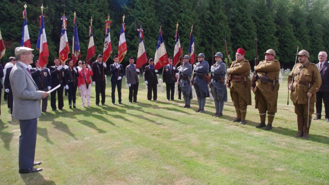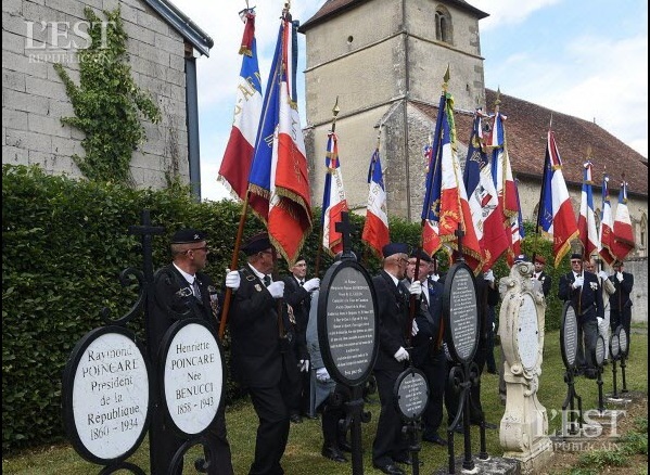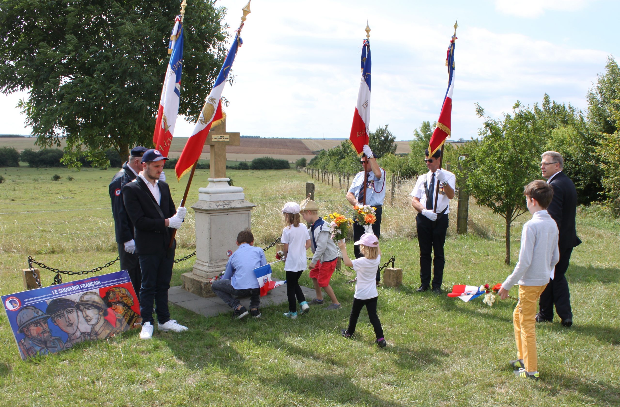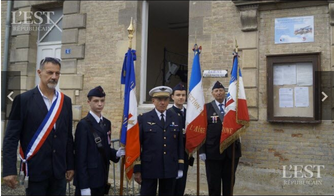 Inauguration d’une plaque en hommage aux trois As de l’escadrille Lafayette à Senard (Meuse) en présence de représentants du Souvenir Français (Photo : Est Républicain).