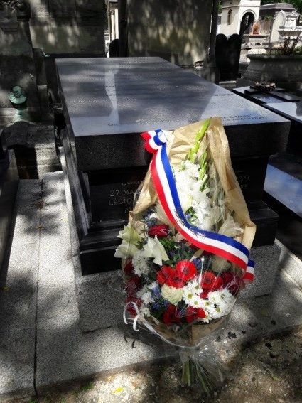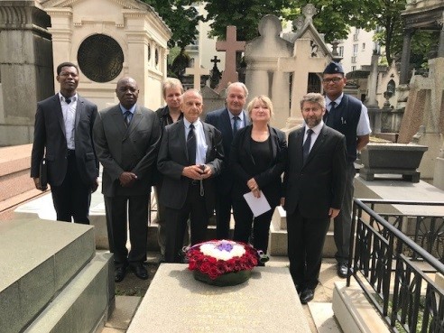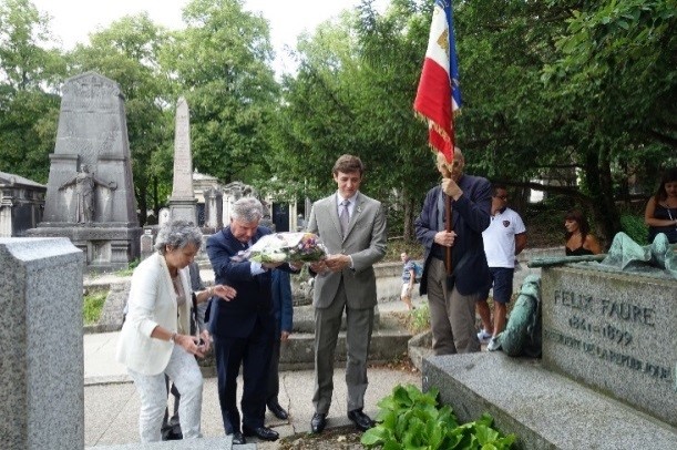 Cérémonie d’hommage à Alexandre Millerand, ancien Président, au cimetière de Passy (Paris 16e) en présence du délégué général du Souvenir Français pour Paris Jean Susini, le Grand Rabbin de France Haïm Korsia, la Présidente du comité de Paris 16e Sylvie Sahut D’Izarn et l’Ambassadeur de Centrafrique.