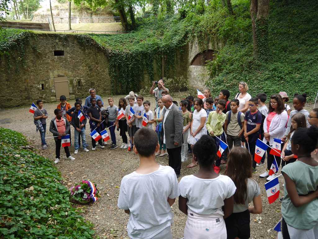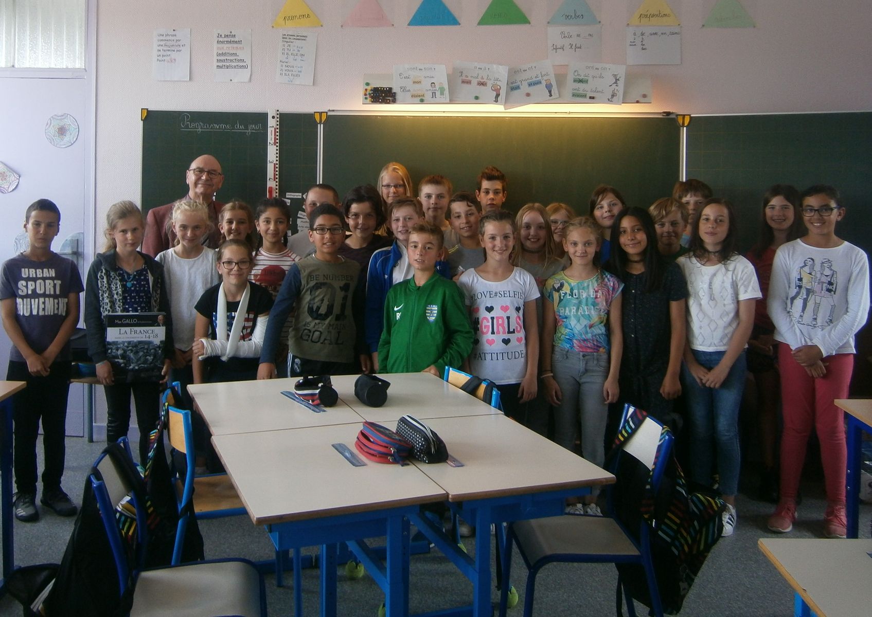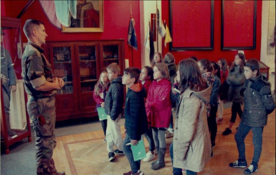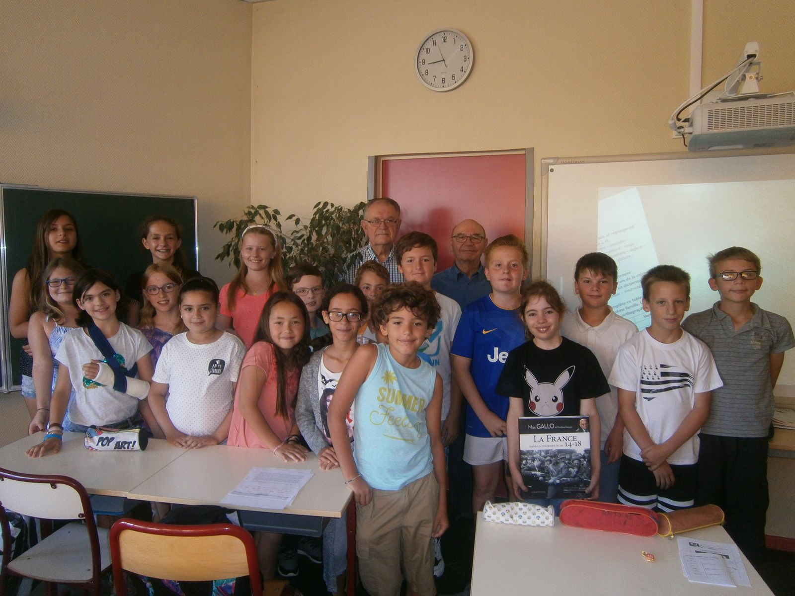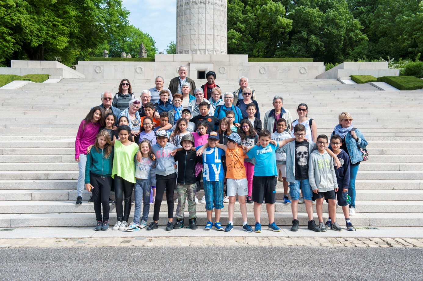 Réunion à Verdun en juin 2017 d’une classe CM 2 de l’école élémentaire Frédéric Mistral de Vaulx-en-Velin (Rhône) et un groupe de retraités dans le cadre d’un projet intergénérationnel labellisé par la Mission du Centenaire et subventionné par la Délégation générale du Souvenir Français pour le Rhône.