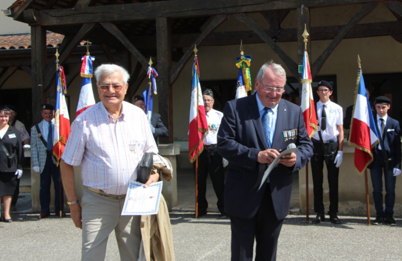 Remise de décoration à deux membres du comité du Souvenir Français de L’Isle-en-Dodon (31) (Crédit Photo : DDM).