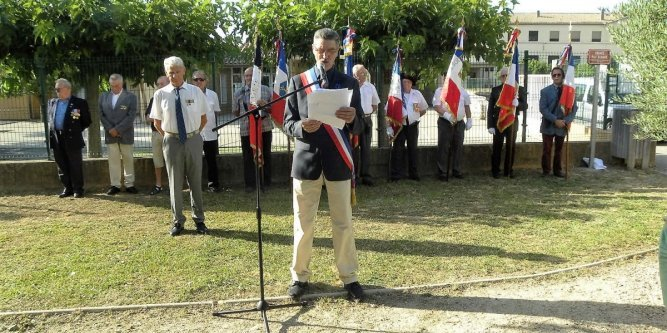 Participation d’une délégation de Castelmaurou, composée du délégué général du Souvenir Français de la Haute-Garonne Charlie Mazingue, du vice-président du Groupe de Recherches des inconnus fusillés au bois de la Reulle Gragnague/Castelmaurou et d’un membre de ces associations à la cérémonie traditionnelle de la municipalité de Paulhac en hommage aux combattants de la commune, morts au champ d’honneur le 15 août (Photo : La Dépêche du Midi).