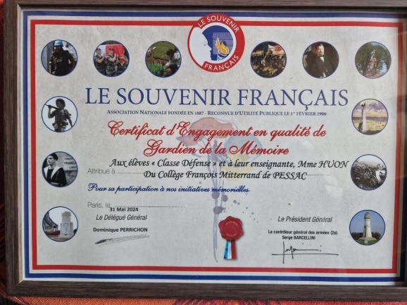 Le 11 juin 2024, après une levée des couleurs et la Marseillaise chantée par la classe Défense, la convention de dépôt d’un drapeau « Rhin et Danube » au collège Jean Macé de Clichy a été renouvelée par la Principale du collège et Claude Guy, Délégué Général des Hauts-de-Seine, en présence du professeur Le Gac en charge de la classe Défense et de deux élèves porte-drapeau.