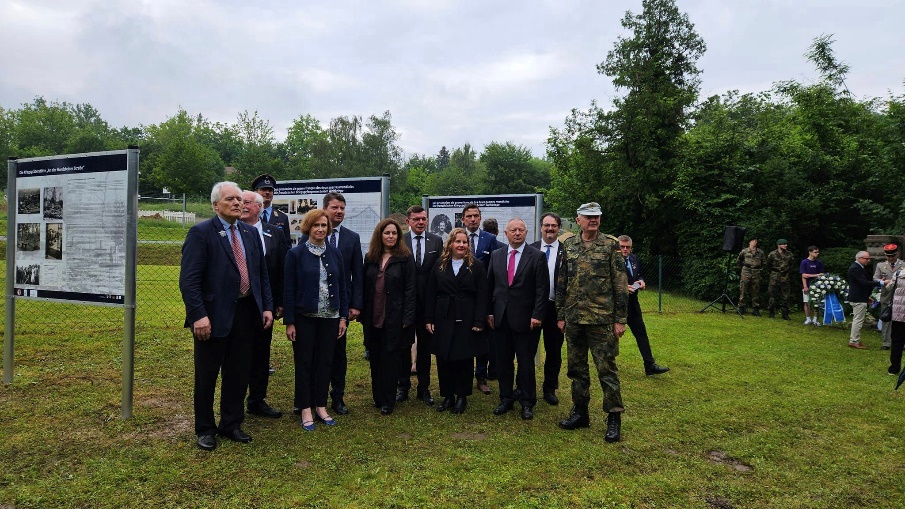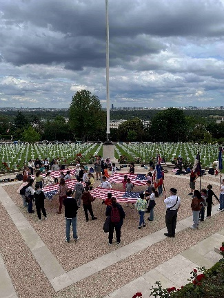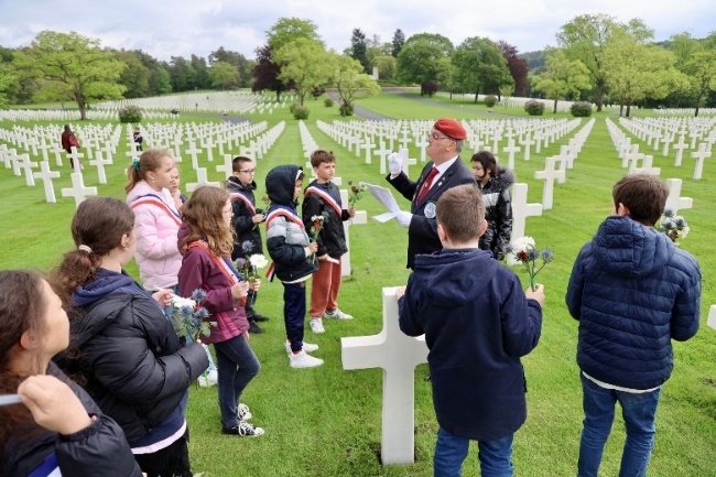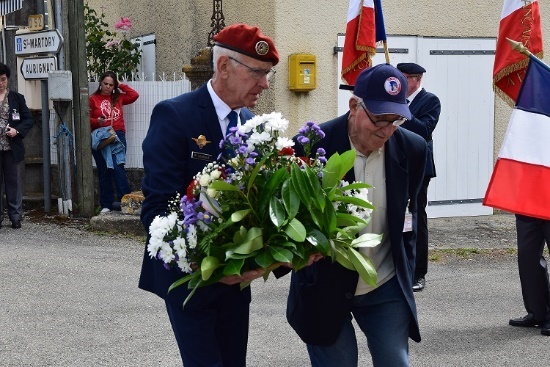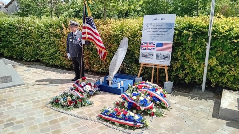Étaient présents : Martine Marcinkowski, le colonel Pecrel de la base de défense de Phalsbourg, le président de la Communauté de Communes Sarrebourg Moselle Sud, Roland Klein, le correspondant du 622d Bombardment Squadron, Messieurs les Docteurs en histoire, Francis et Jean Noël, qui ont contribué à cette action mémorielle par leurs travaux de recherches et pour leur écriture du mémoire sur l’histoire de cette nécropole nationale et des jeunes élèves de collège, mai 2024.