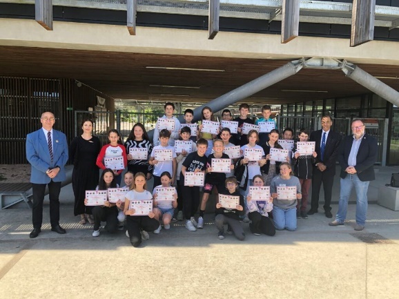 Le 25 juin, le drapeau de la Fédération Départementale des Pupilles de la Nation et Orphelins de Guerre a été remis au lycée le Ferradou de Blagnac (Haute-Garonne) et à son proviseur, Sylvain Decuignière, par Jean-Pierre Mazure, Délégué Général, Paule Lumia, Secrétaire de la Délégation et Yannick Maurette, Président du Comité de Blagnac. Étaient présents à cette cérémonie les autorités civiles et militaires dont un piquet d’honneur de la Gendarmerie des Transports Aériens.