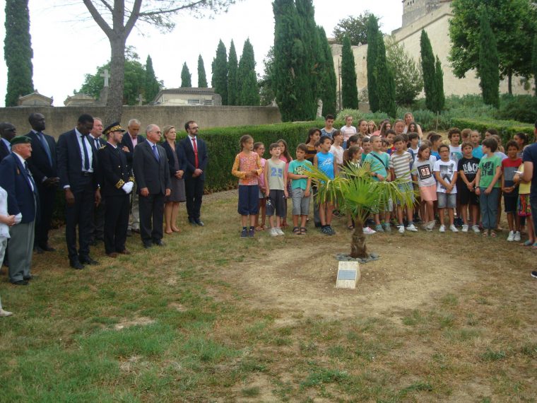 Cet espace de mémoire comporte également un palmier planté il y a un an par les élèves de l’école de l’Immaculée Conception dans le cadre du projet « un arbre pour nos Tirailleurs Sénégalais »