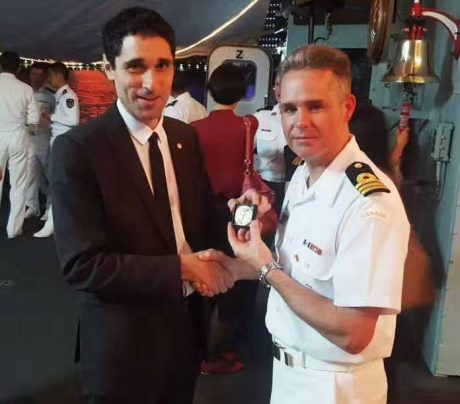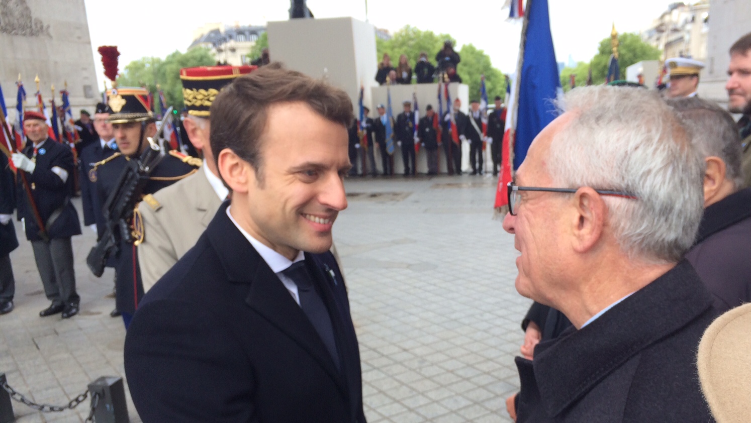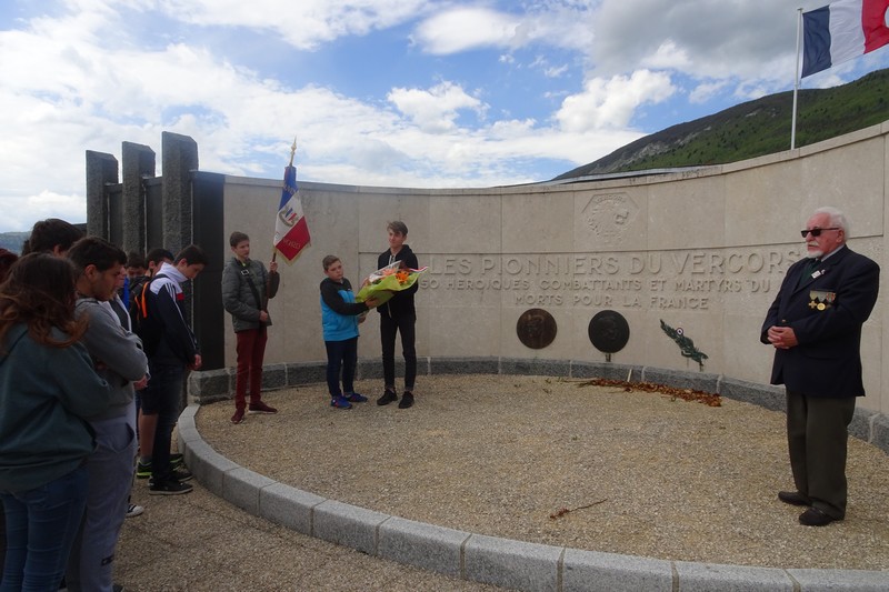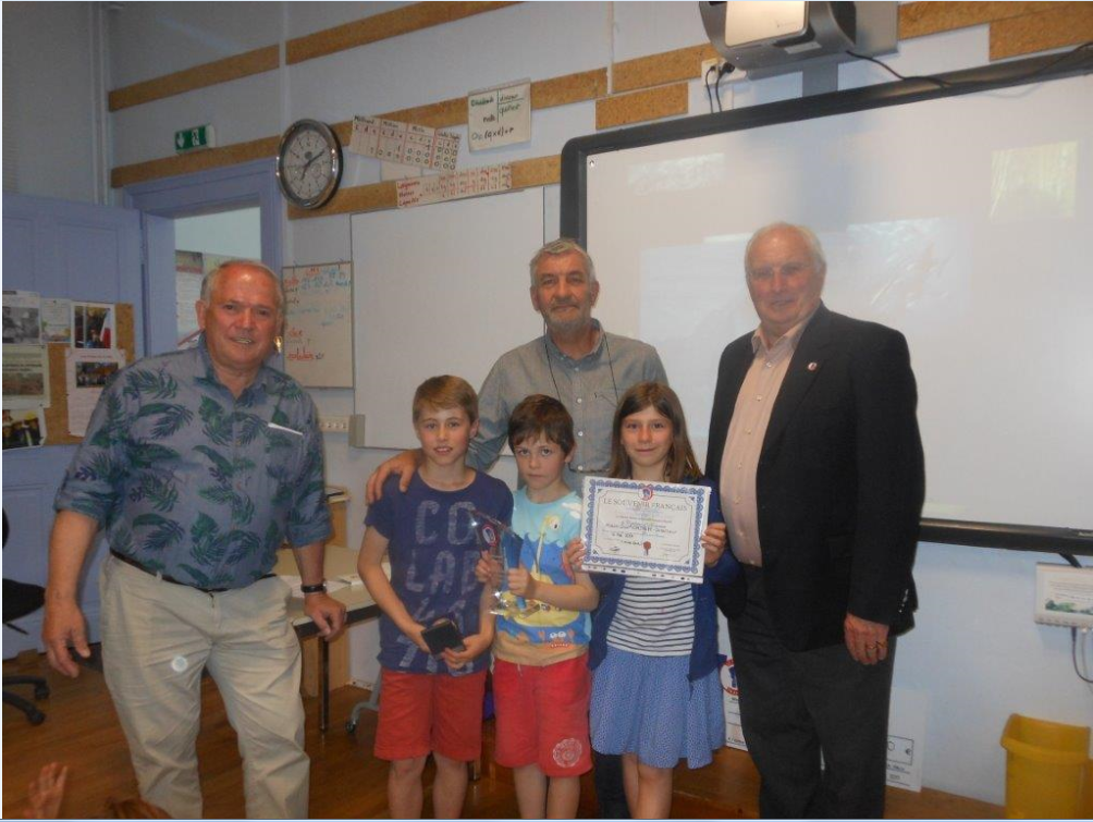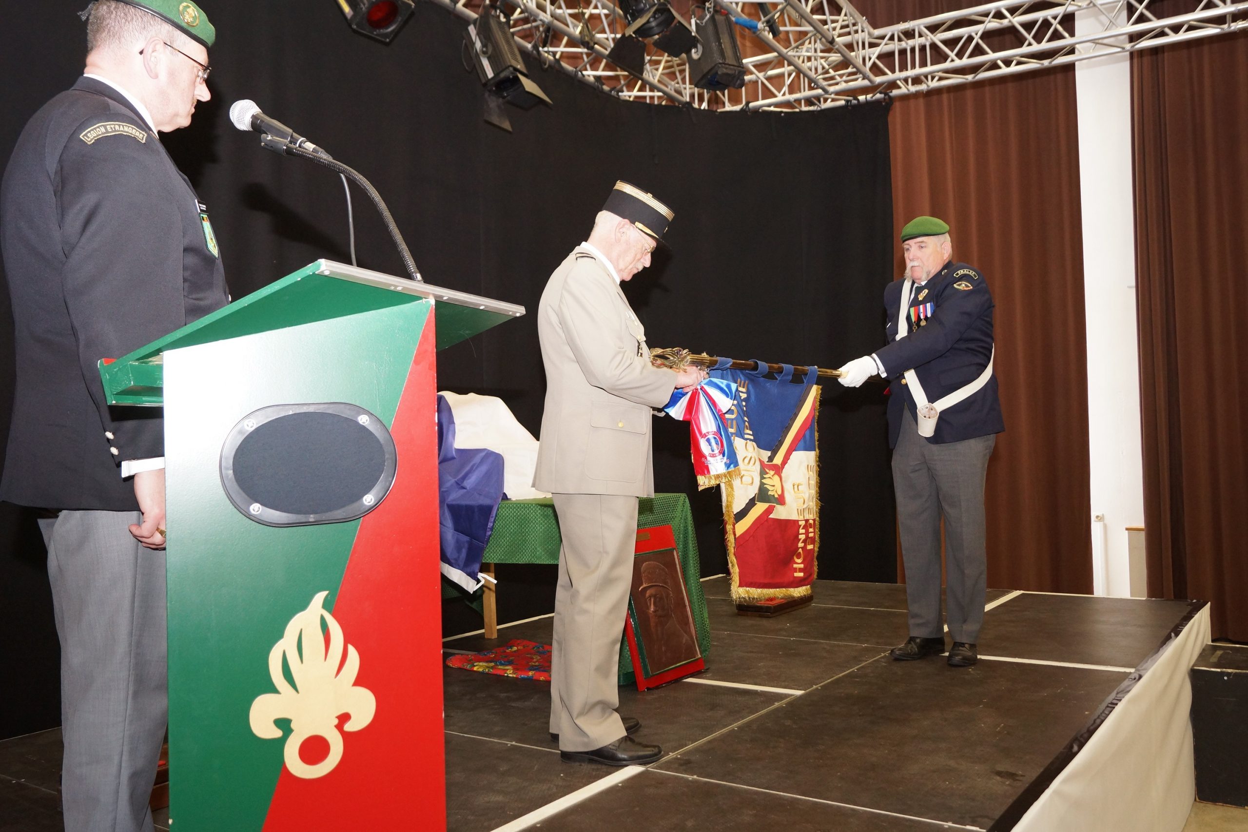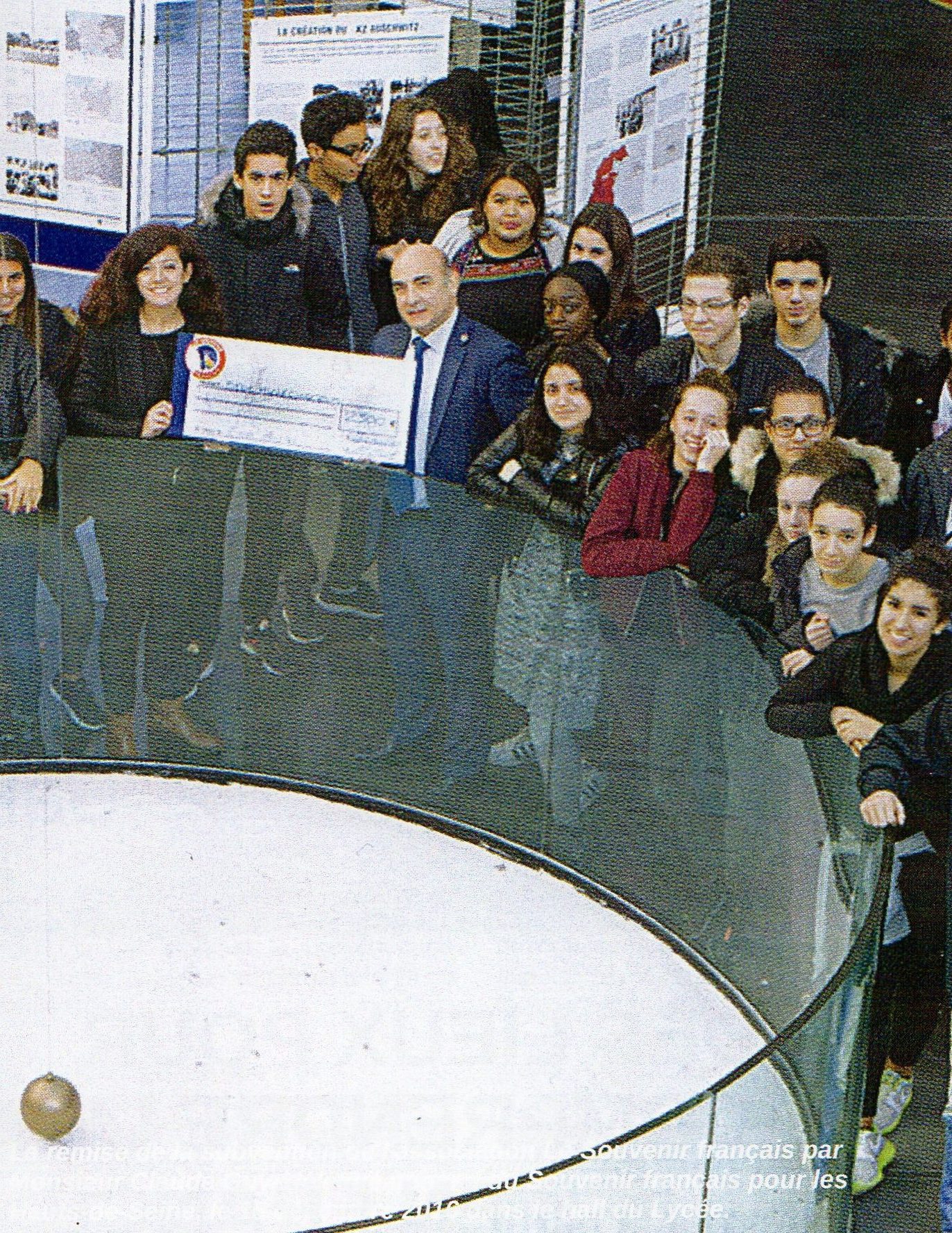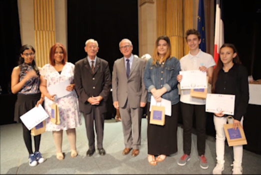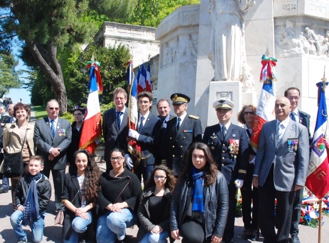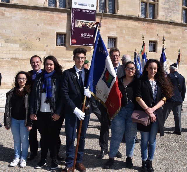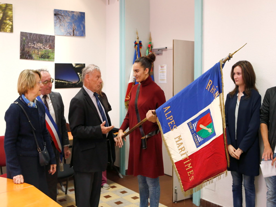 Remise du drapeau Rhin et Danube au Lycée du Parc Impérial à Nice après la signature de convention entre Madame Monique FUSELIER STEPHAN, présidente du Souvenir Français du comité de Nice, Monsieur Jacques BISCH, correspondant Rhin et Danube et Monsieur Hervé QUINSAT, proviseur du Lycée le 11 mai 2017.