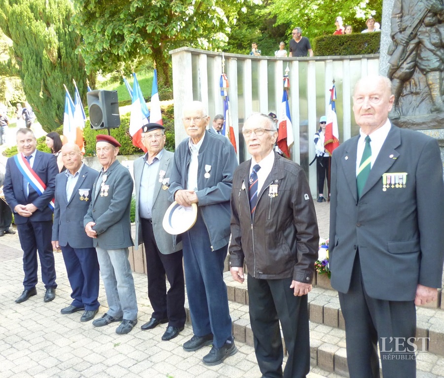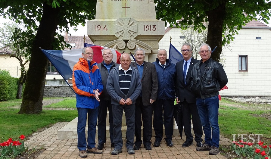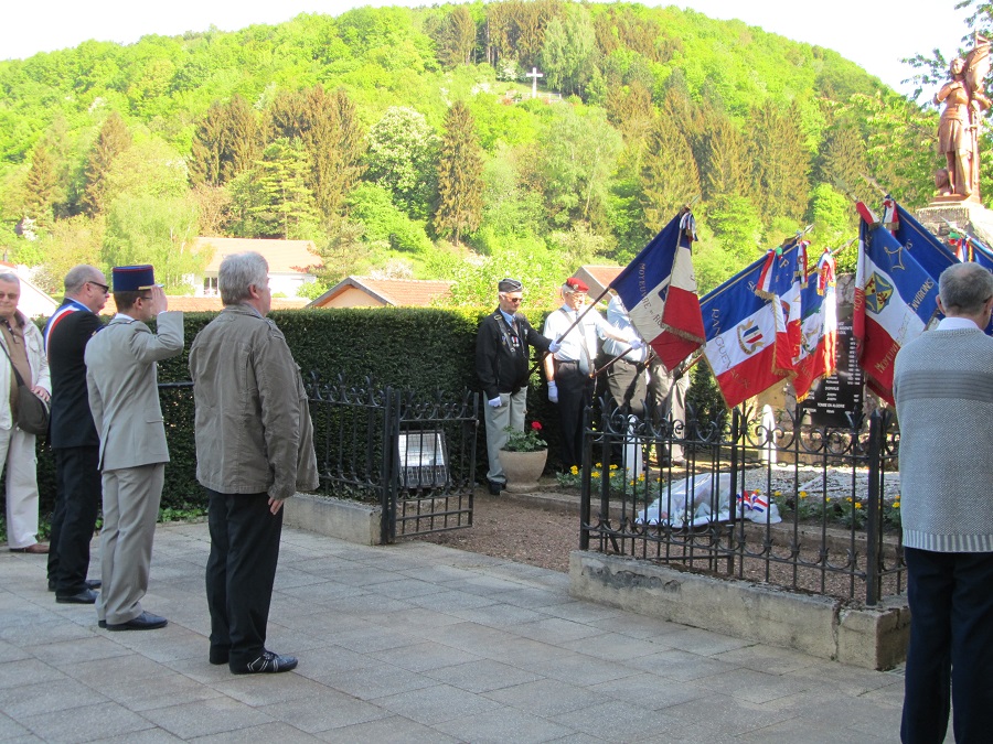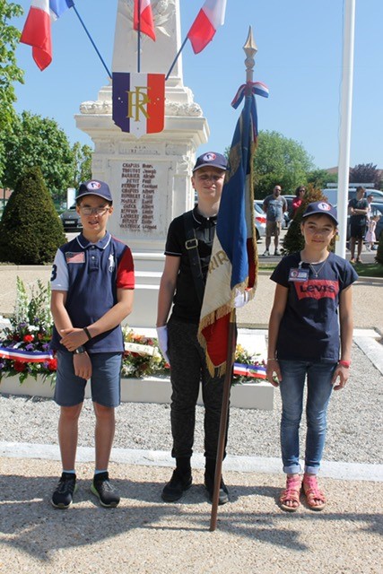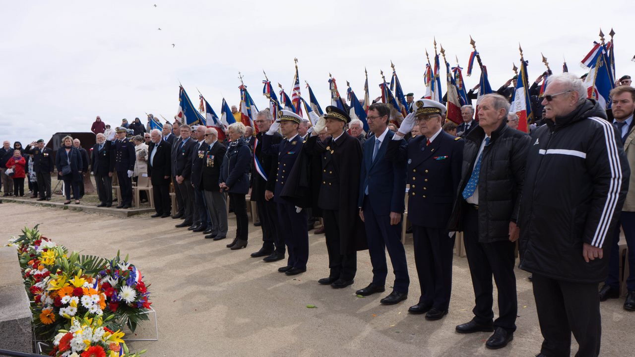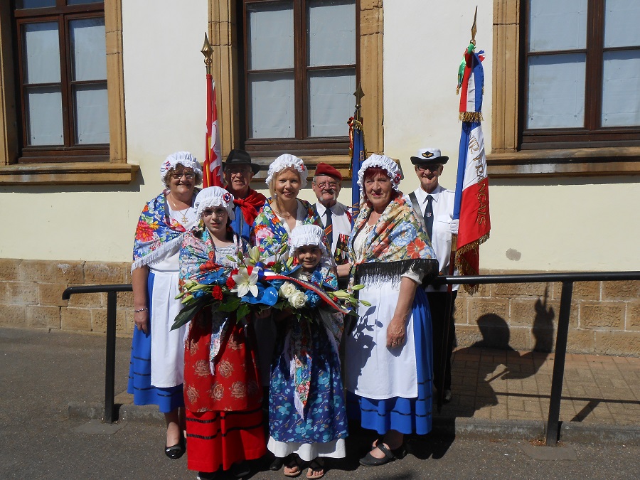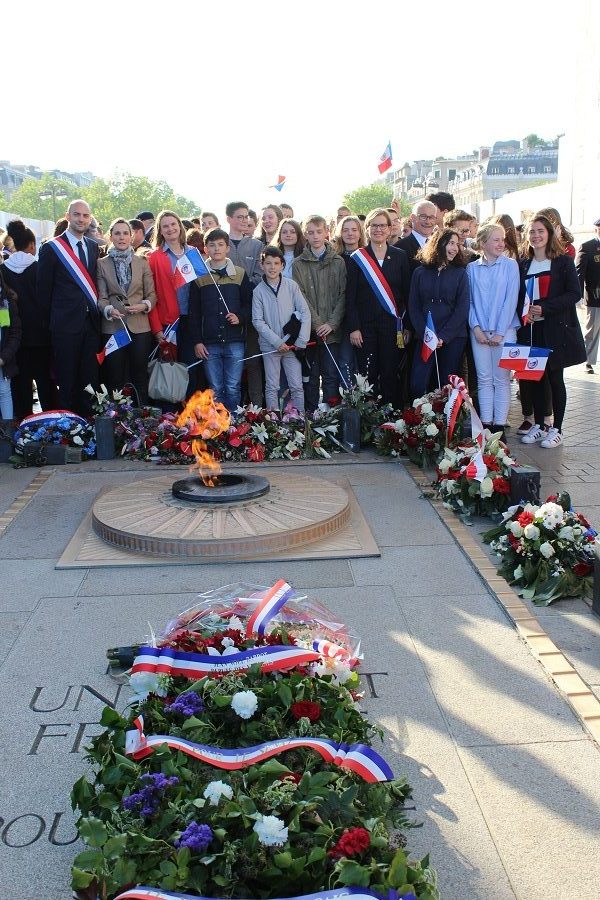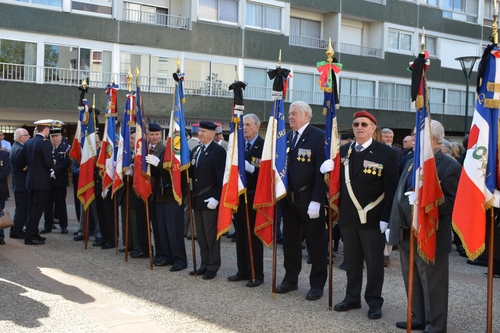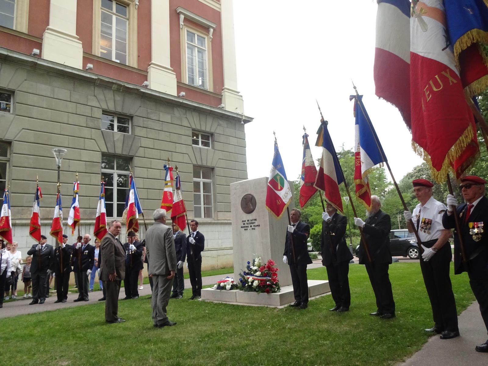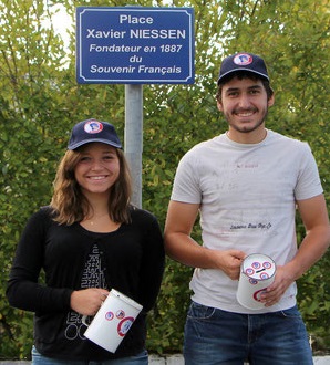Cérémonie d’hommage aux fusiliers-marins de la brigade Ronarc’h, le samedi 28 avril 2018, à Dixmude. Départ du cortège sur le Grote Markt, avec le drapeau du Comité du Souvenir Français de Flandre Occidentale en tête. Arrivée de la flamme prélevée sur la tombe du Soldat Inconnu à Paris par le Relais Sacré.