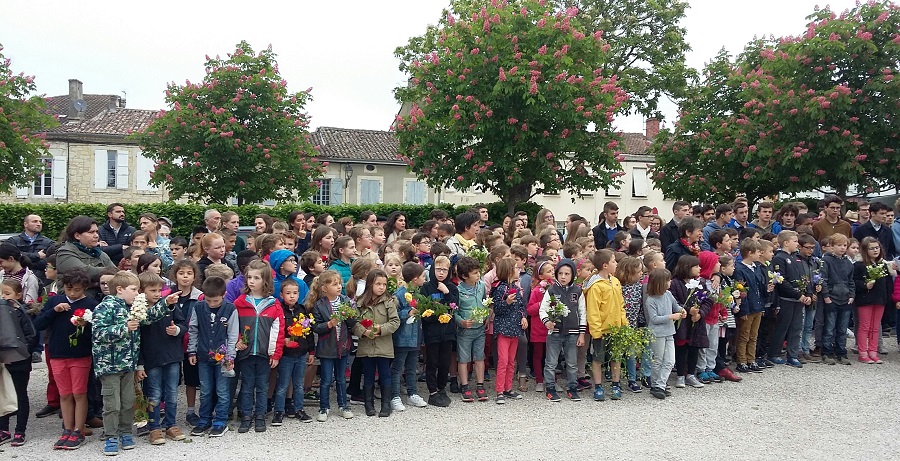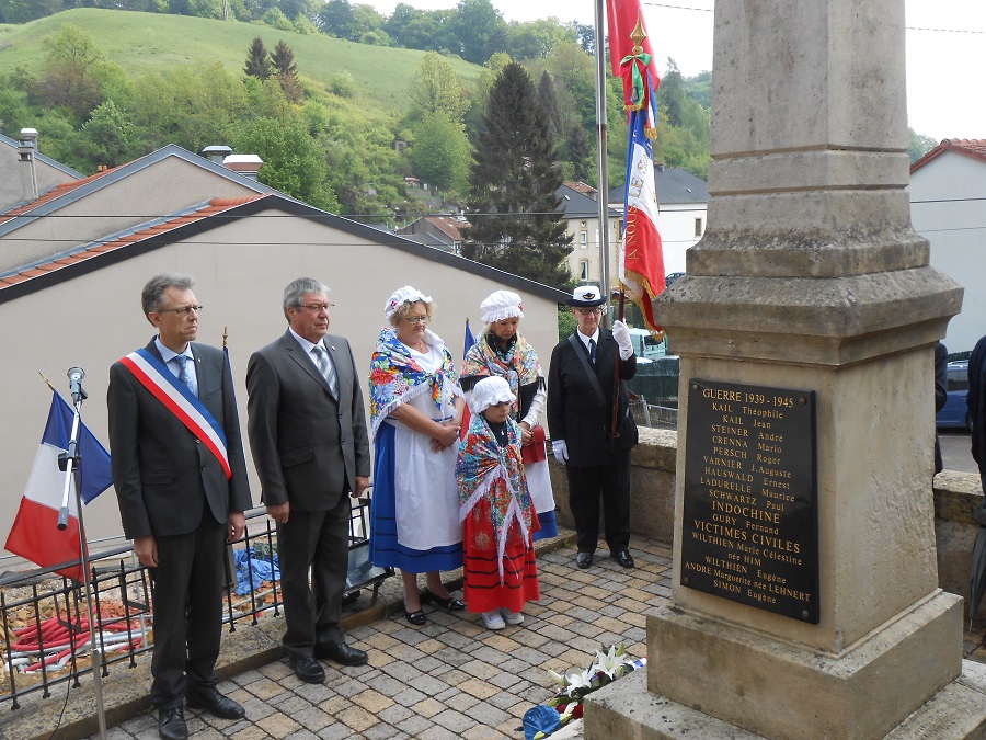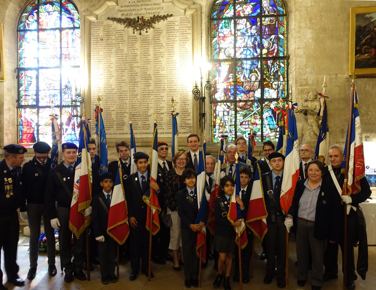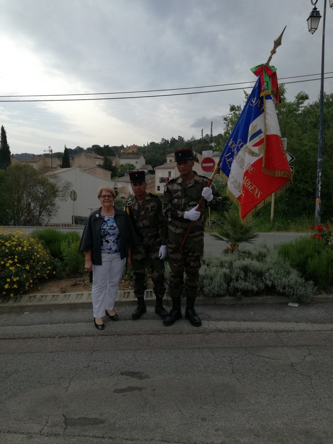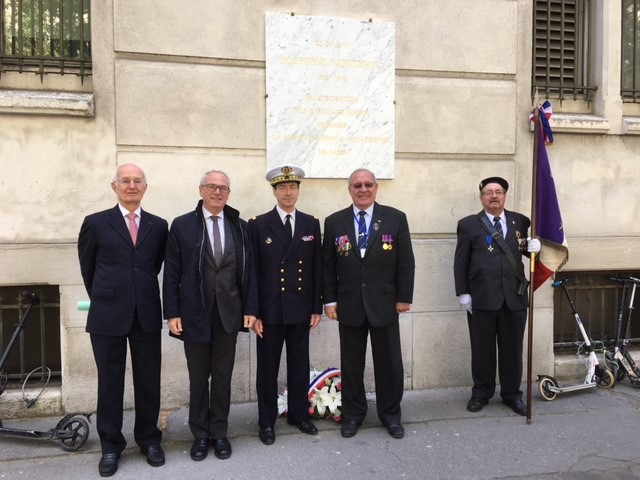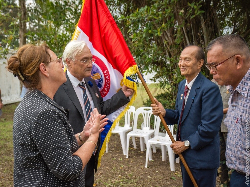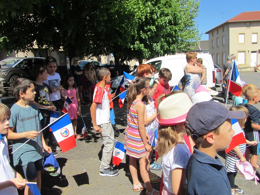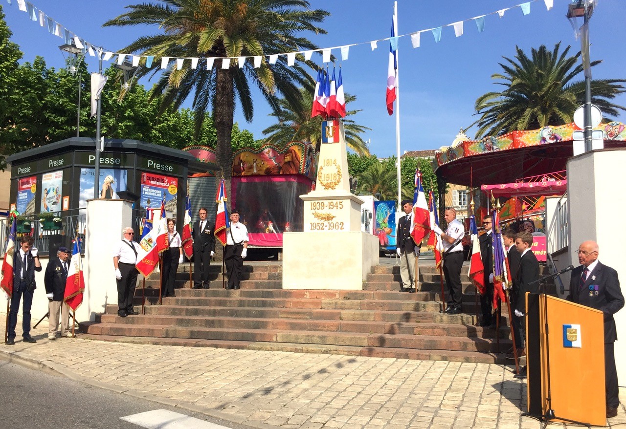 Cérémonie d’hommage aux fusiliers-marins de la brigade Ronarc’h, le samedi 28 avril 2018, à Dixmude. Départ du cortège sur le Grote Markt, avec le drapeau du Comité du Souvenir Français de Flandre Occidentale en tête. Arrivée de la flamme prélevée sur la tombe du Soldat Inconnu à Paris par le Relais Sacré.