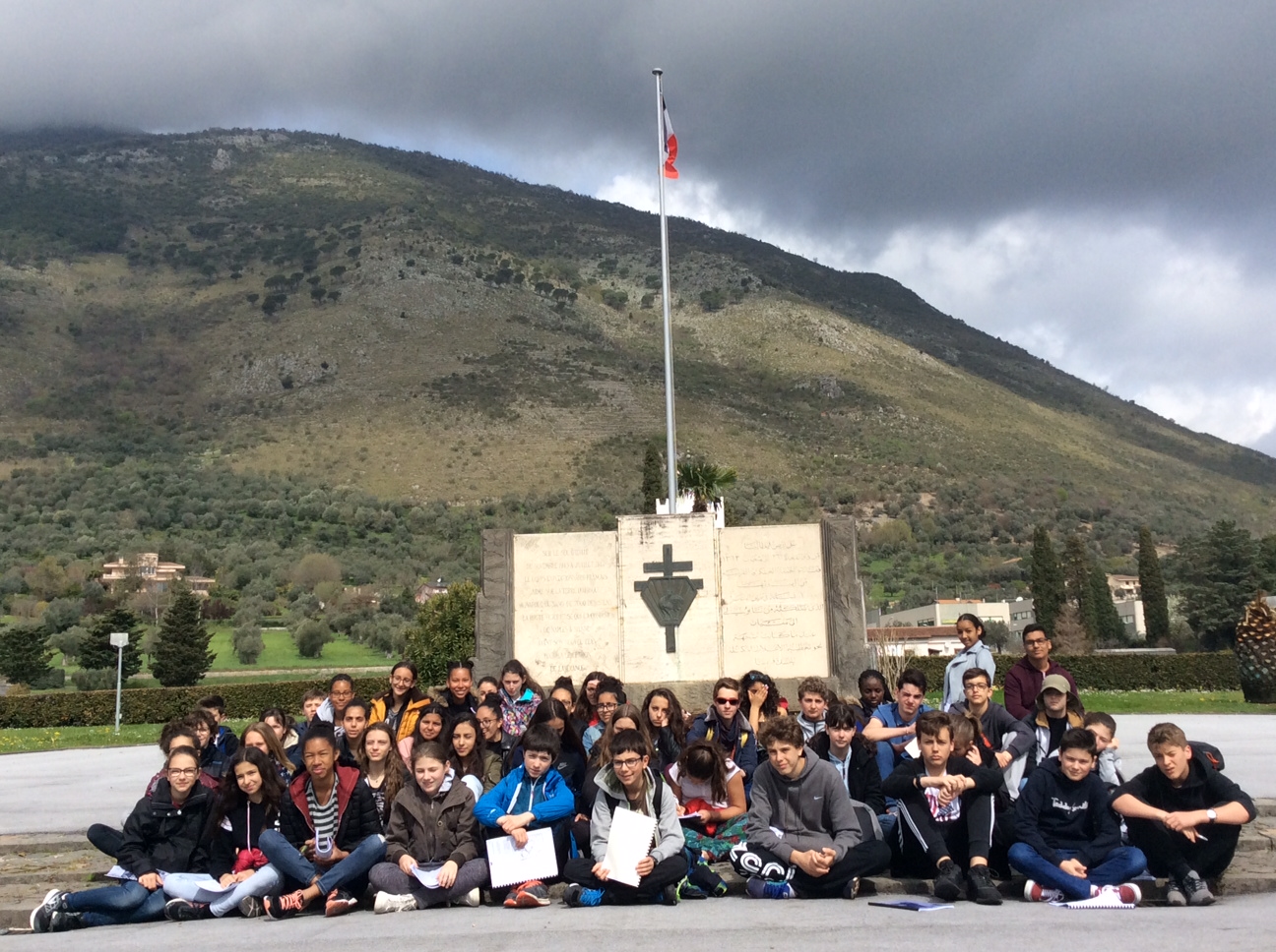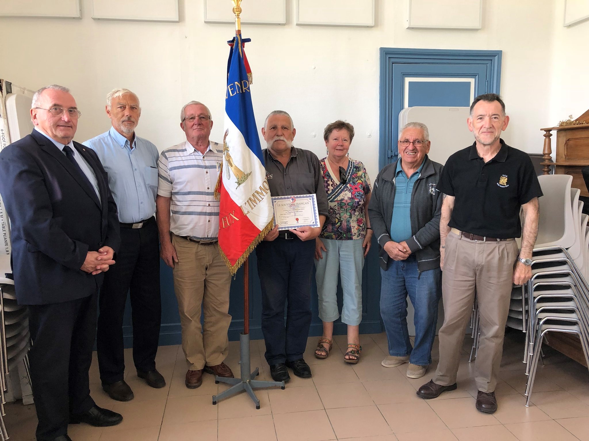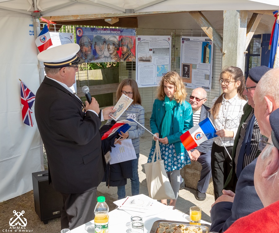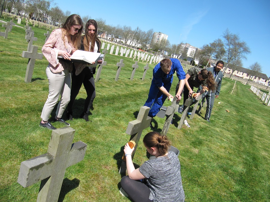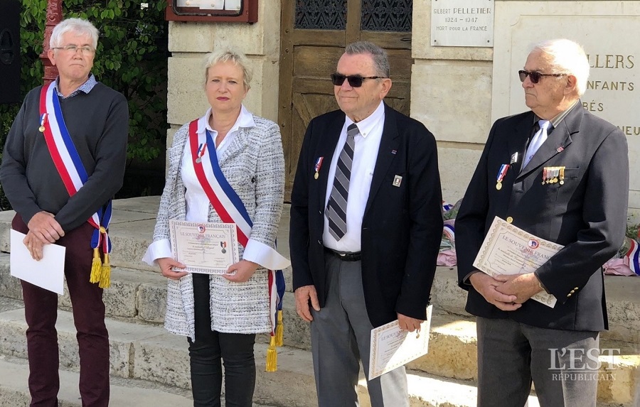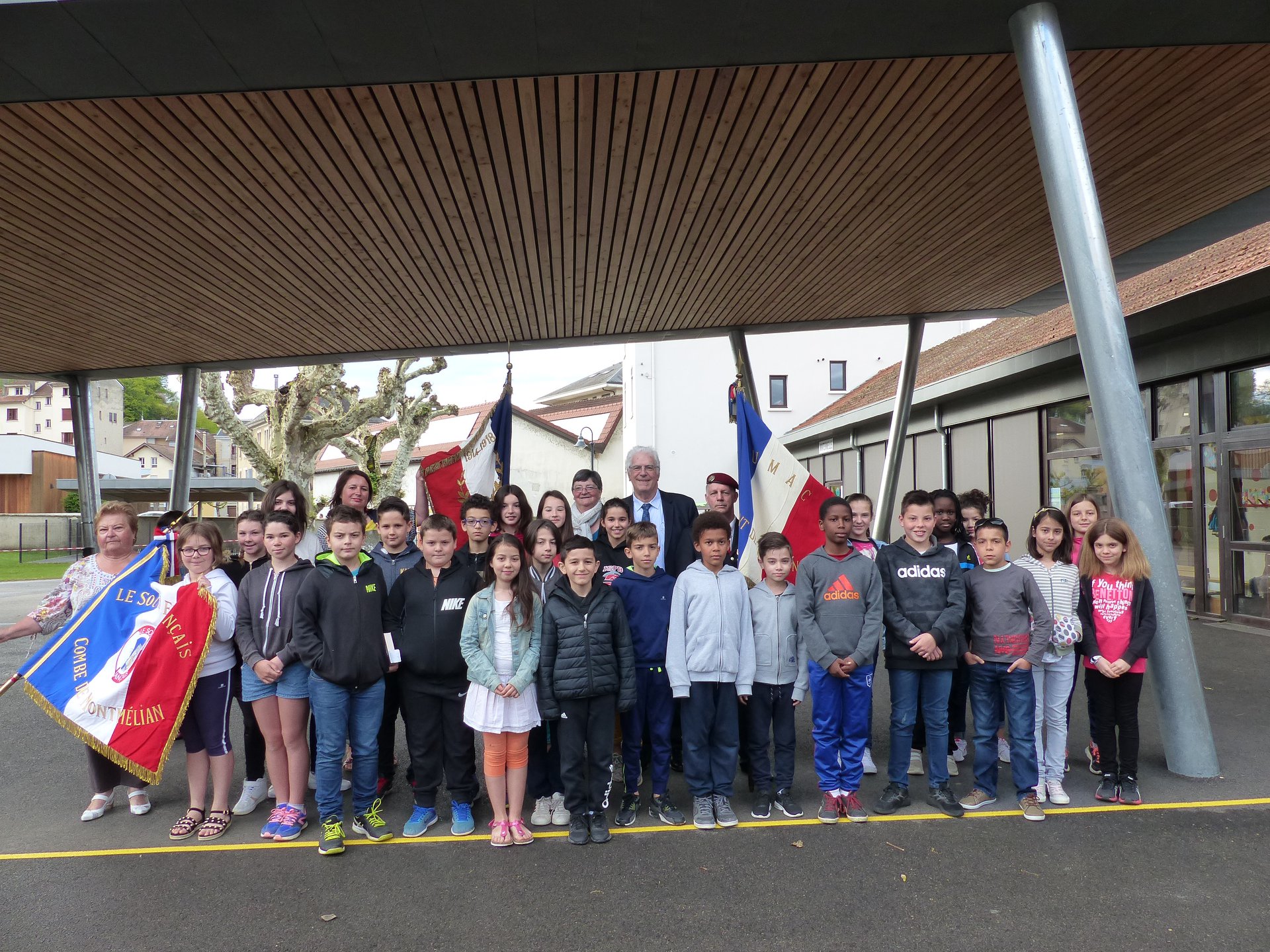 Cérémonie d’hommage aux fusiliers-marins de la brigade Ronarc’h, le samedi 28 avril 2018, à Dixmude. Départ du cortège sur le Grote Markt, avec le drapeau du Comité du Souvenir Français de Flandre Occidentale en tête. Arrivée de la flamme prélevée sur la tombe du Soldat Inconnu à Paris par le Relais Sacré.