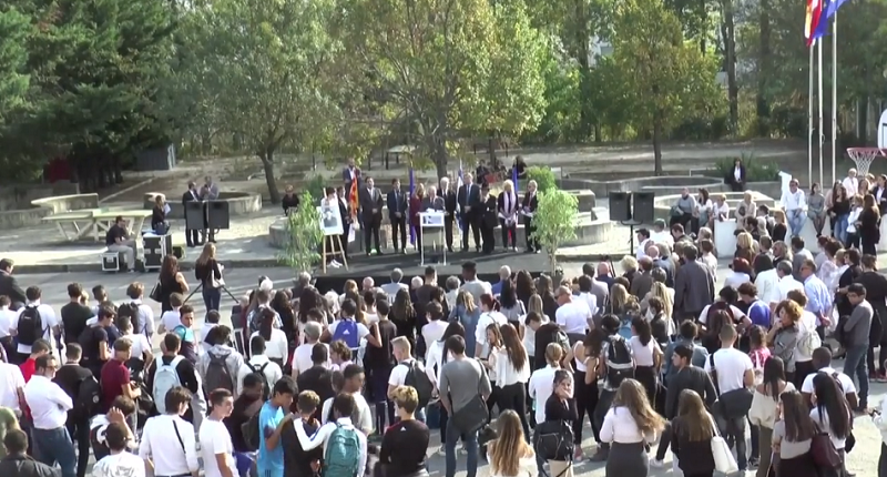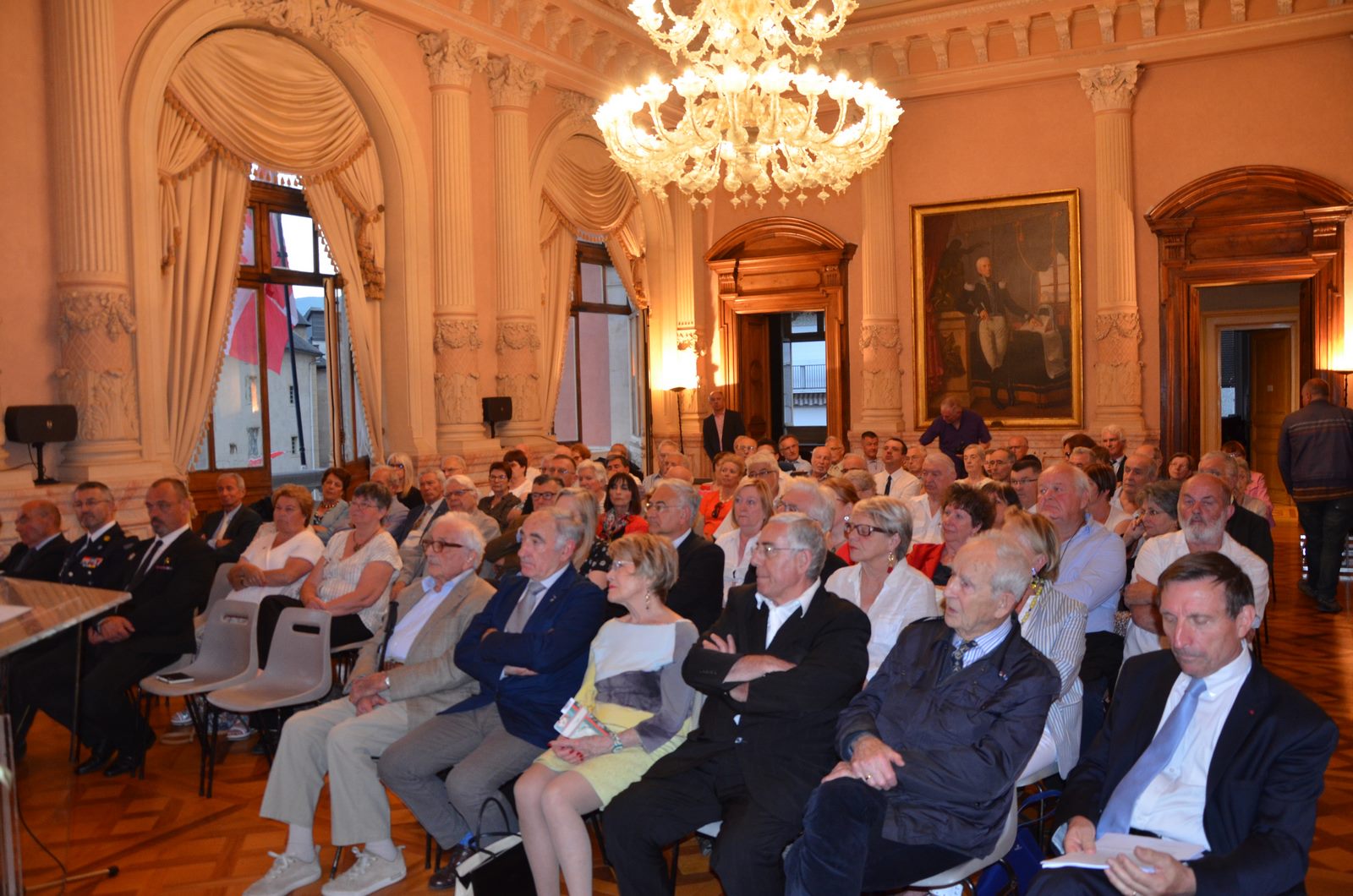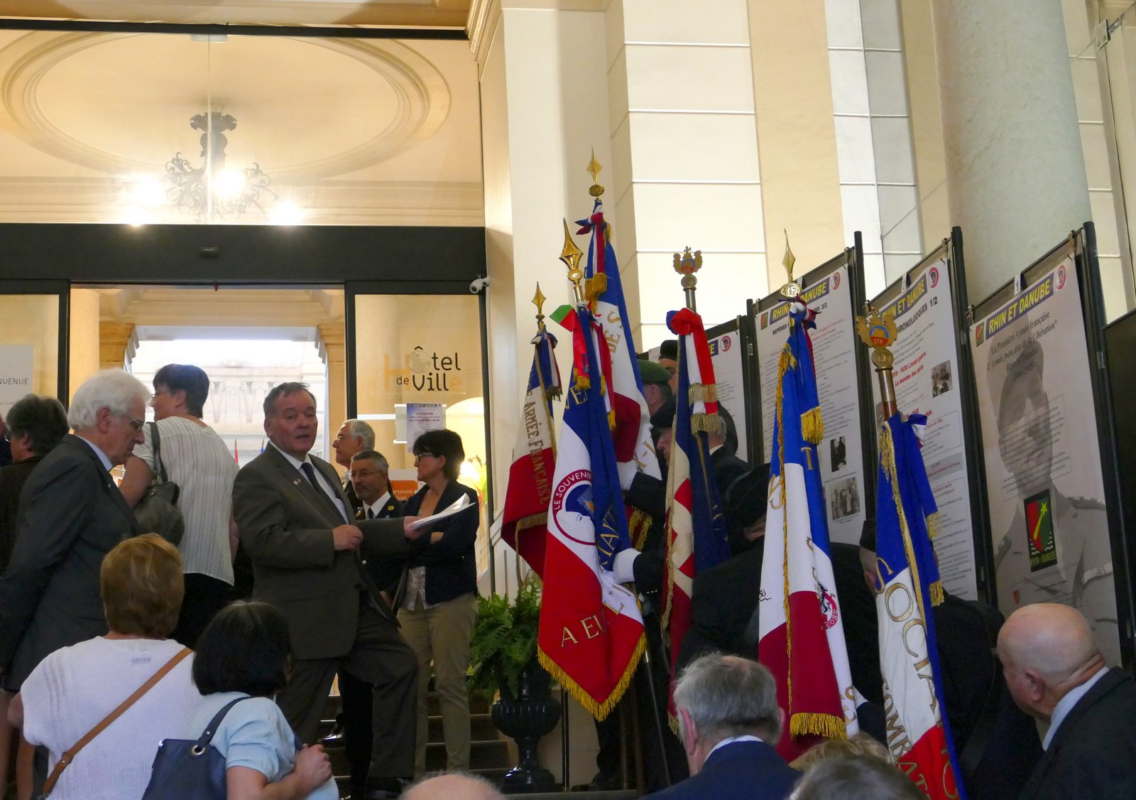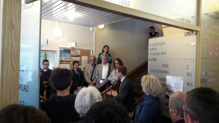 Philippe Court, préfet de l’Ardèche, et Fabien Lorenzo, directeur des services du cabinet du préfet, à l’inauguration des expositions « De guerre en guerre », du photographe Luc Mary-Rabine et « Mémoire(s) de guerre d’une préfecture », exposition qui fait suite à un travail pluridisciplinaire de la classe de seconde du Lycée Vincent d’Indy à Privas (07) avec le soutien du Souvenir Français, le 17 mai 2018.