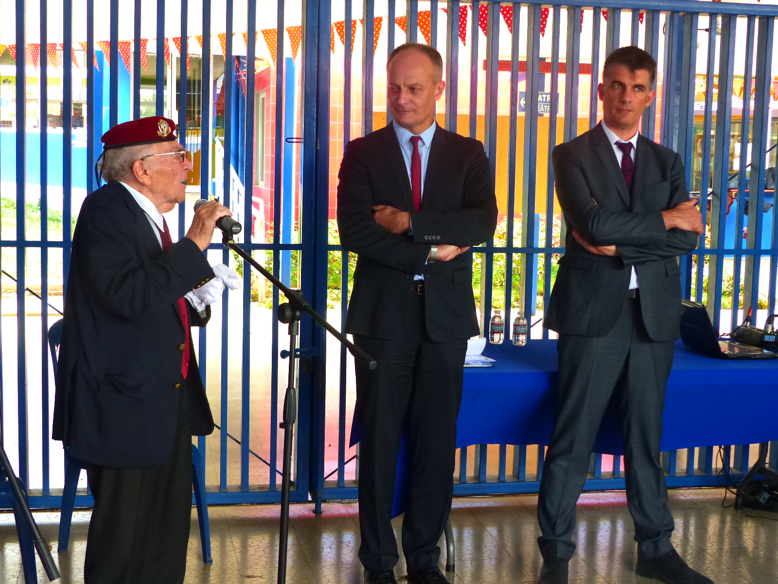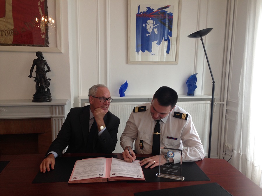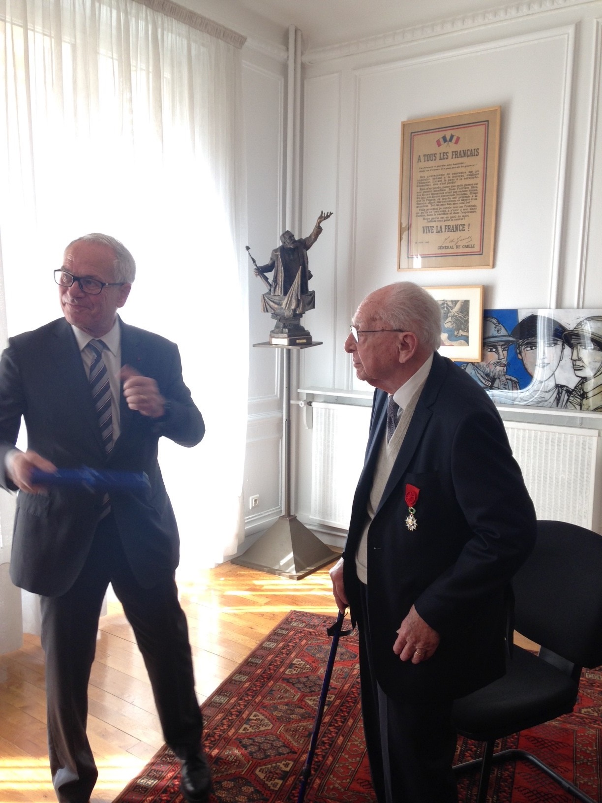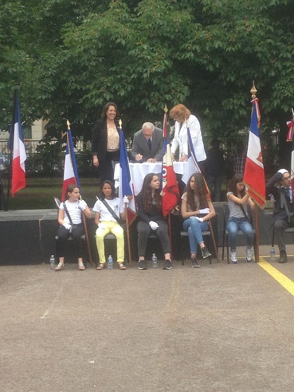 Philippe Court, préfet de l’Ardèche, et Fabien Lorenzo, directeur des services du cabinet du préfet, à l’inauguration des expositions « De guerre en guerre », du photographe Luc Mary-Rabine et « Mémoire(s) de guerre d’une préfecture », exposition qui fait suite à un travail pluridisciplinaire de la classe de seconde du Lycée Vincent d’Indy à Privas (07) avec le soutien du Souvenir Français, le 17 mai 2018.