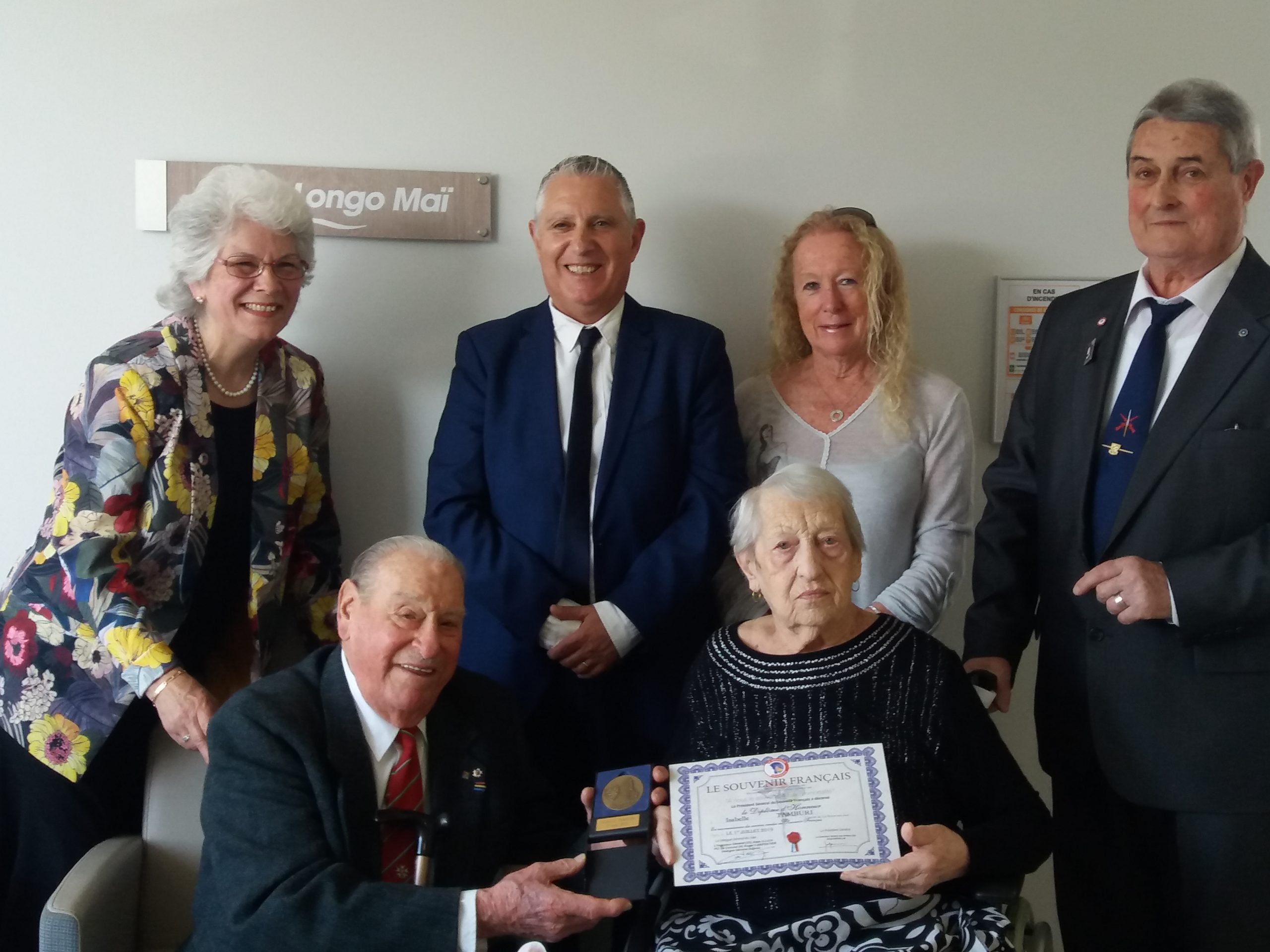 Remise d’un diplôme d’honneur à la doyenne des adhérents du comité du Souvenir Français de La Seyne-sur-Mer (Var), le 7 mai 2019.