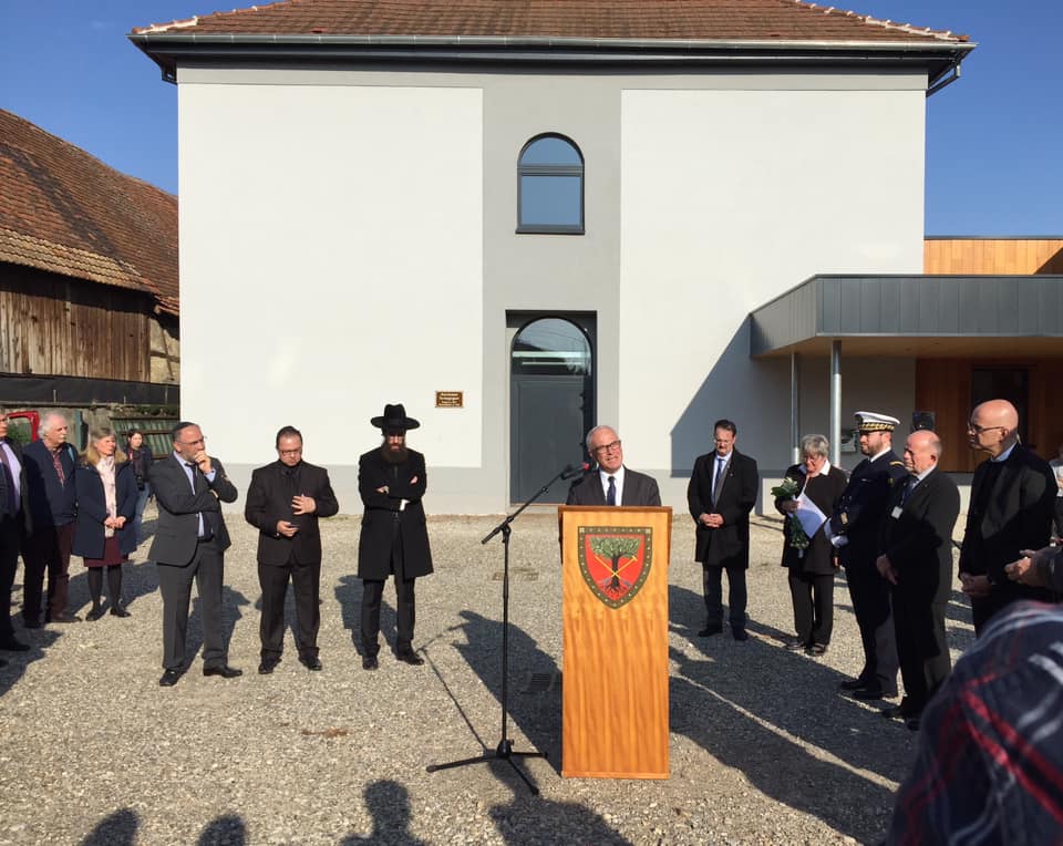 Discours du président général du Souvenir Français, Serge Barcellini, lors de la cérémonie de pose de pavés de la mémoire Stolpersteine à Muttersholtz (Alsace), le 30 avril 2019.