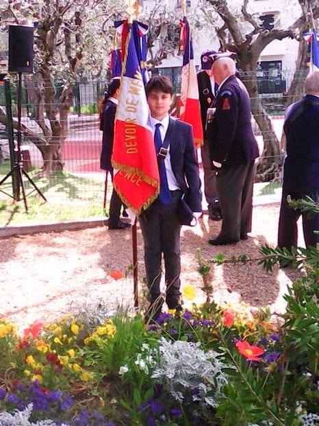 Nouveau porte-drapeau jeune du comité du Souvenir Français de Vence (Alpes-Maritimes), en mai 2019.