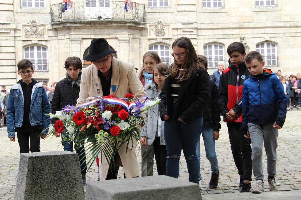 Dépôt de gerbe par la délégation du Souvenir Français de la Haute-Loire avec le conseil municipal des jeunes au Puy-en-Velay, le 8 mai 2019.