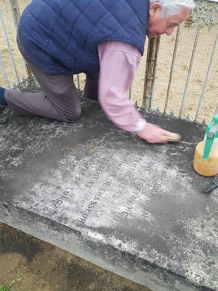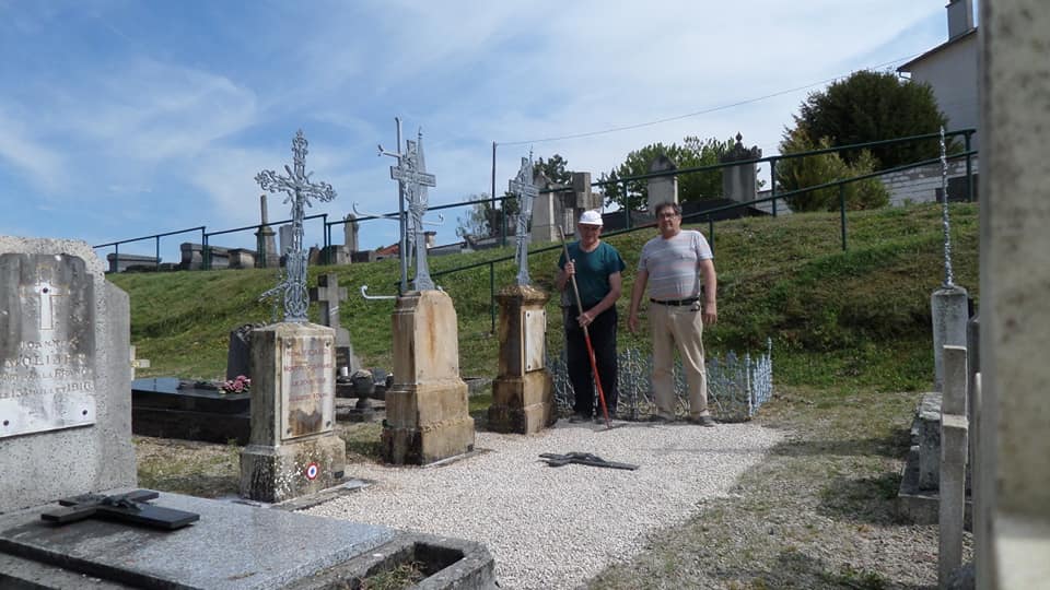 Nettoyage des tombes par Le Souvenir Français de Puiseaux à Lorcy (Loiret), le 4 mai 2019.