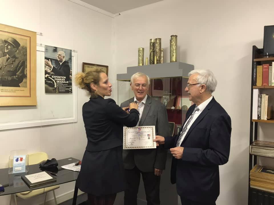 Remise de médaille à un adhérent du comité du Souvenir Français du Pays Loudunais par la déléguée générale de la Vienne Aida Jaafar, le 11 mai 2019.