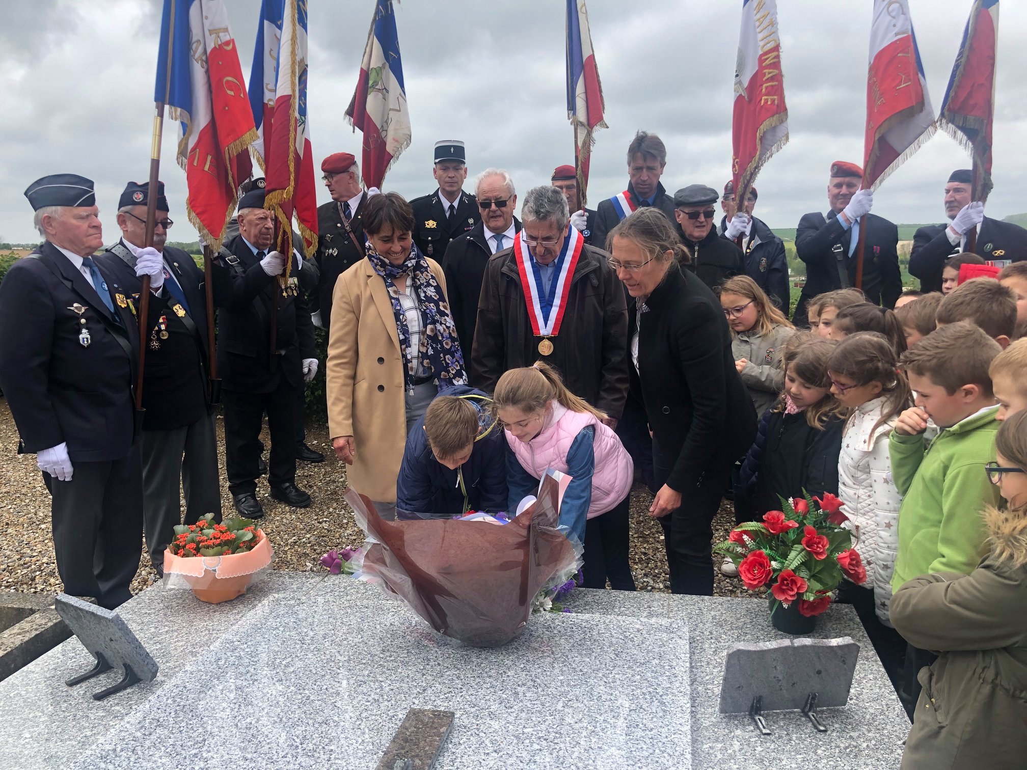 Cérémonie de dépôt de la cocarde du Souvenir Français, le 13 mai 2019, sur la sépulture de Monsieur Arthur Savreux, victime civile d’une fusillade à Crécy-en-Ponthieu (Somme) le 3 septembre 1944.