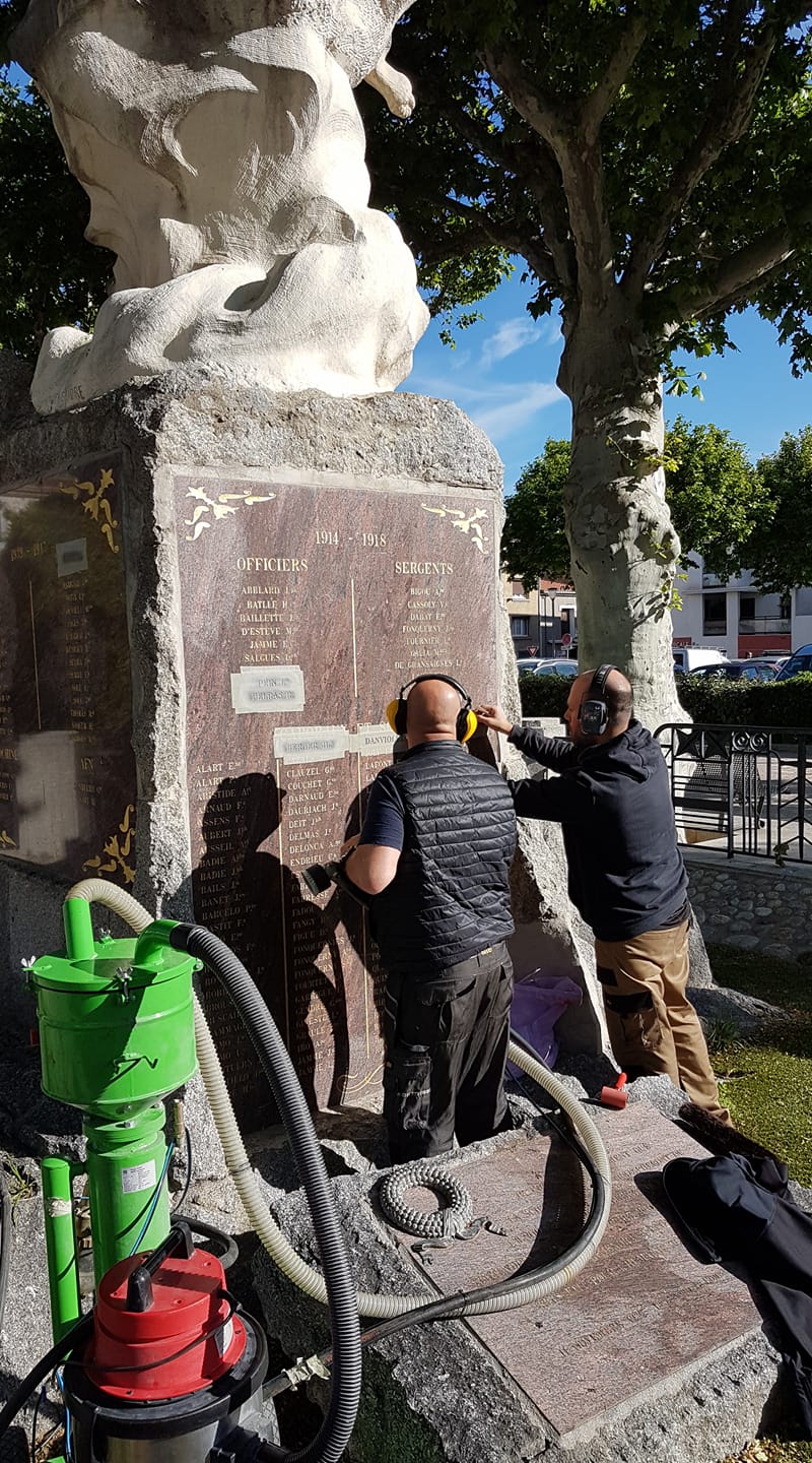 Inscription de 7 noms sur le monument aux Morts d’Ille-sur-Tet (Pyrénées-Orientales) dont l’identité a été retrouvée grâce au Souvenir Français, le 16 mai 2109.