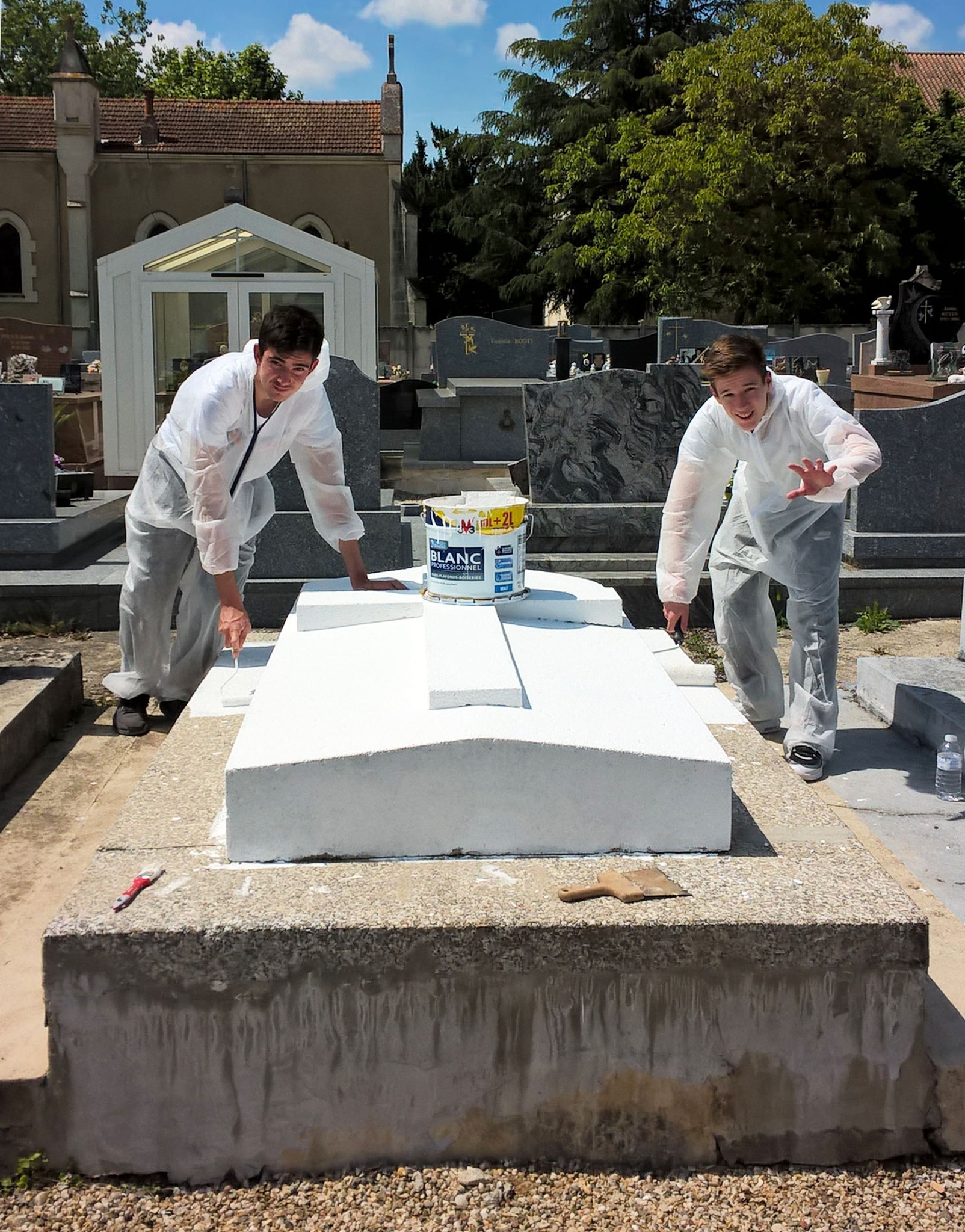 Mise en peinture de trois tombes de « Mort pour la France » par les élèves de Sainte Catherine à Villeneuve- sur-Lot avec Le Souvenir Français du Lot-et-Garonne.
