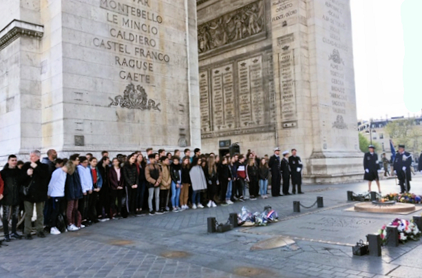 Voyage à Paris et participation au ravivage de la Flamme sous l’Arc de Triomphe des élèves de Veyre-Monton (Puy-de-Dôme), le 4 avril 2019.