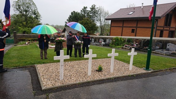 Cérémonie franco-germanique à Bistrof organisée par Arnaud Schilippi, délégué général adjoint du Souvenir Français pour la Moselle, le 7 mai 2019.