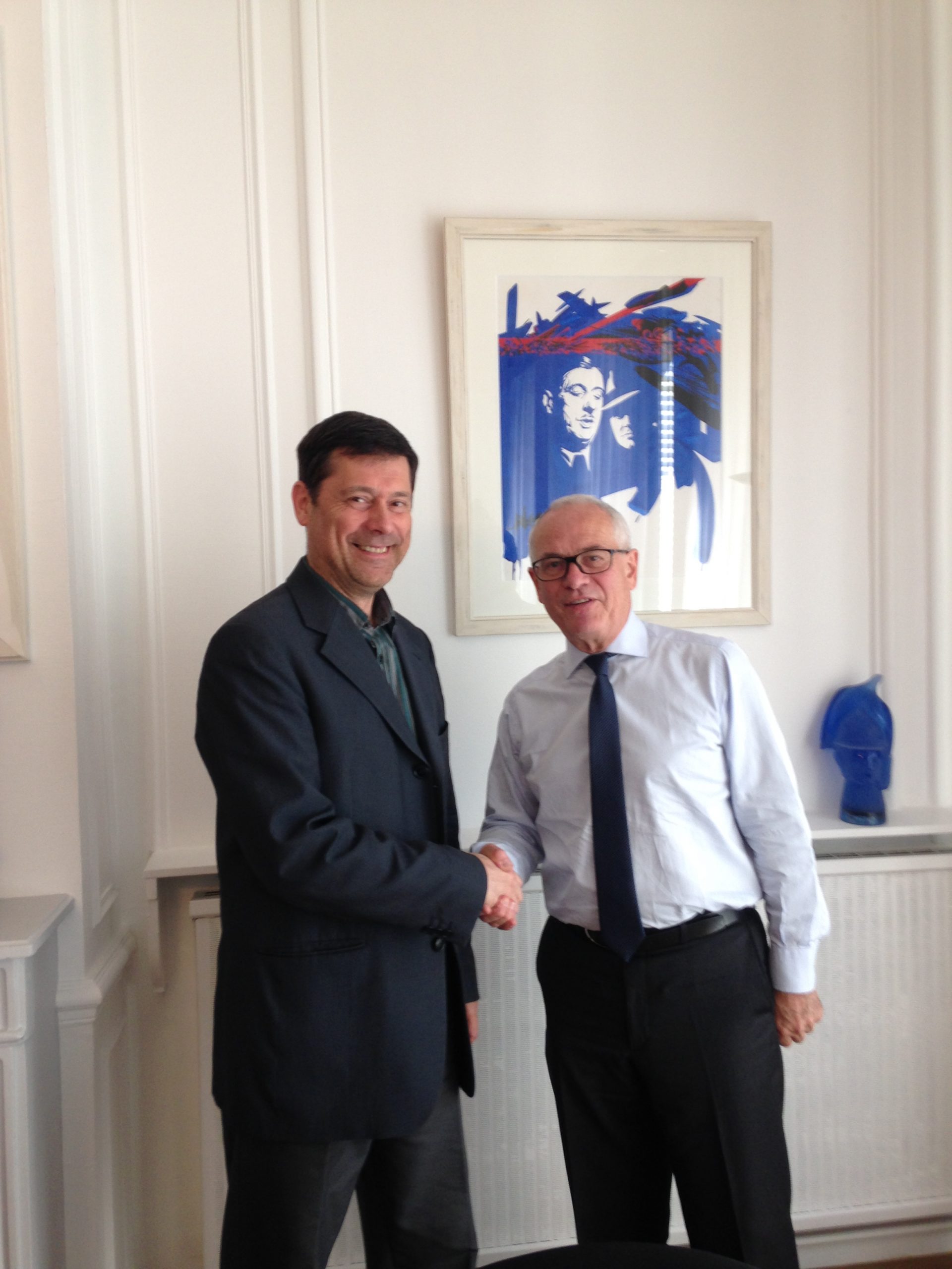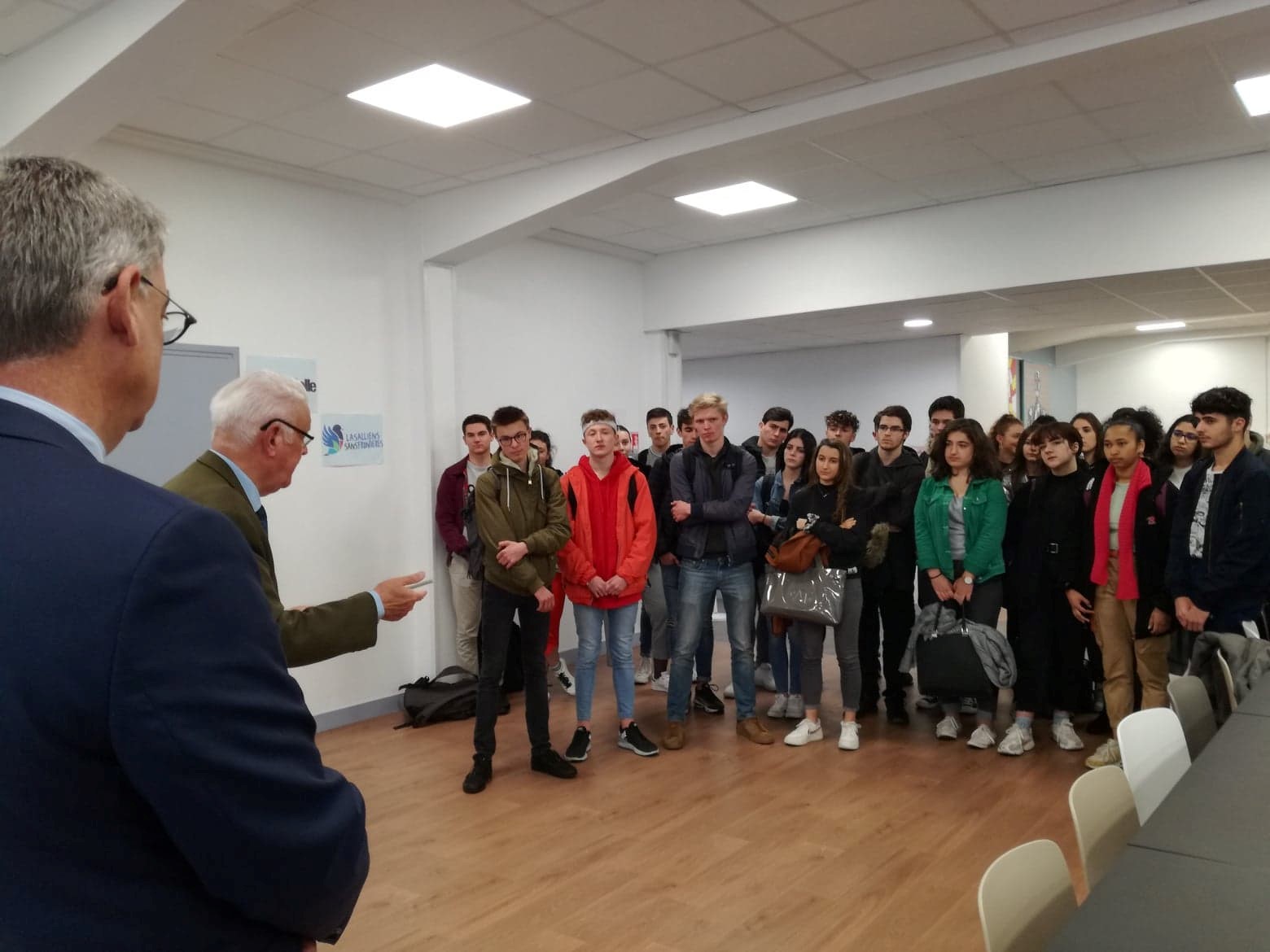 Remise de certificats de gardien de la mémoire par Dominique Chevalier, délégué général du Puy-de-Dôme, et cérémonie avec les lycéens de l’ensemble scolaire Lasalle Clermont à l’occasion de la fête de l’Europe, le 9 mai 2019.